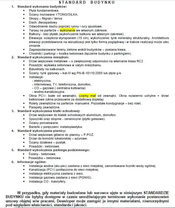 Przykładowy stan wydania lokali w standardzie deweloperskim w opisie na załączonych zdjęciach.