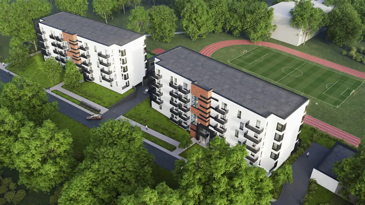 Dwa budynki położone przy ul. Parkowej zlokalizowane w centrum parku, w miejscu gdzie znajdują się potocznie zwane "baraki" - zaprojektowane zostały jako czteropiętrowe z windami oraz podziemnymi miejscami postojowymi
