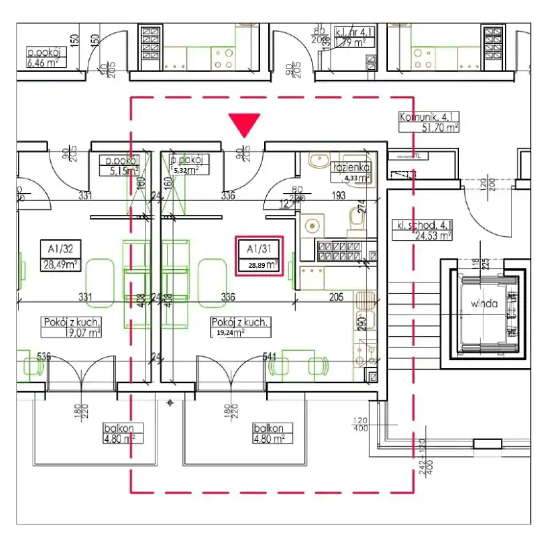 - Charakterystyka mieszkania 28.89 m2, 1 pokój