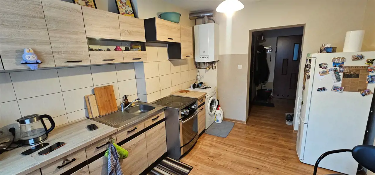 Mieszkanie dwupokojowe o pow. 52 m2 usytuowane jest na pierwszym piętrze budynku położonego w spokojnej atrakcyjnej lokalizacji blisko centrum Strzegomia. Mieszkanie po generalnym remoncie, który przeprowadzono około 2013 roku. Pokoje wykończone panelami, ściany gładzone, okna PCV. Kuchnia umeblowana i wyposażona w sprzęt AGD, wykończona płytkami. Łazienka razem z wc, wyposażona w kabinę prysznicową. Ogrzewanie c.o gazowe, w kuchni zamontowano piec dwufunkcyjny.