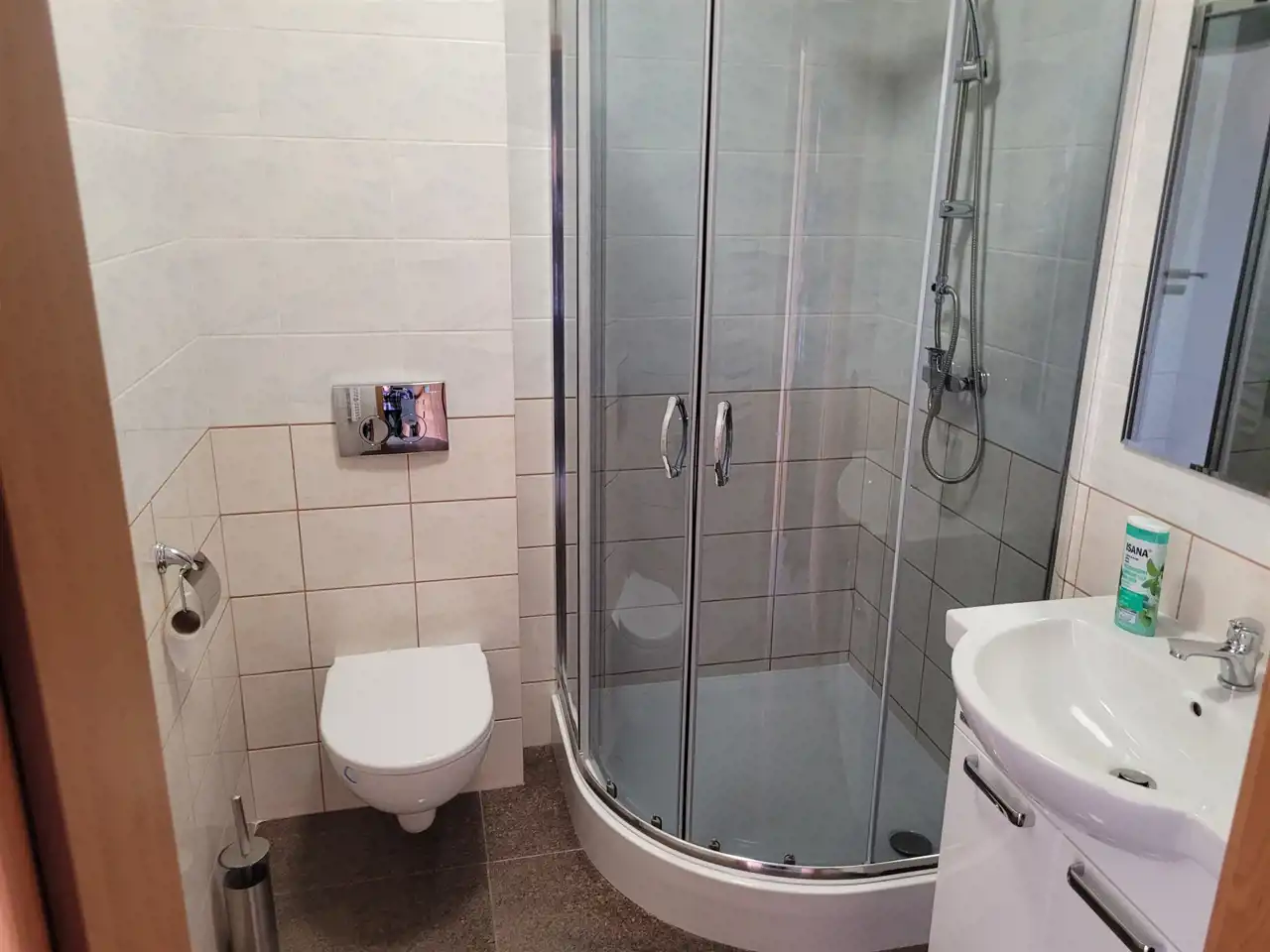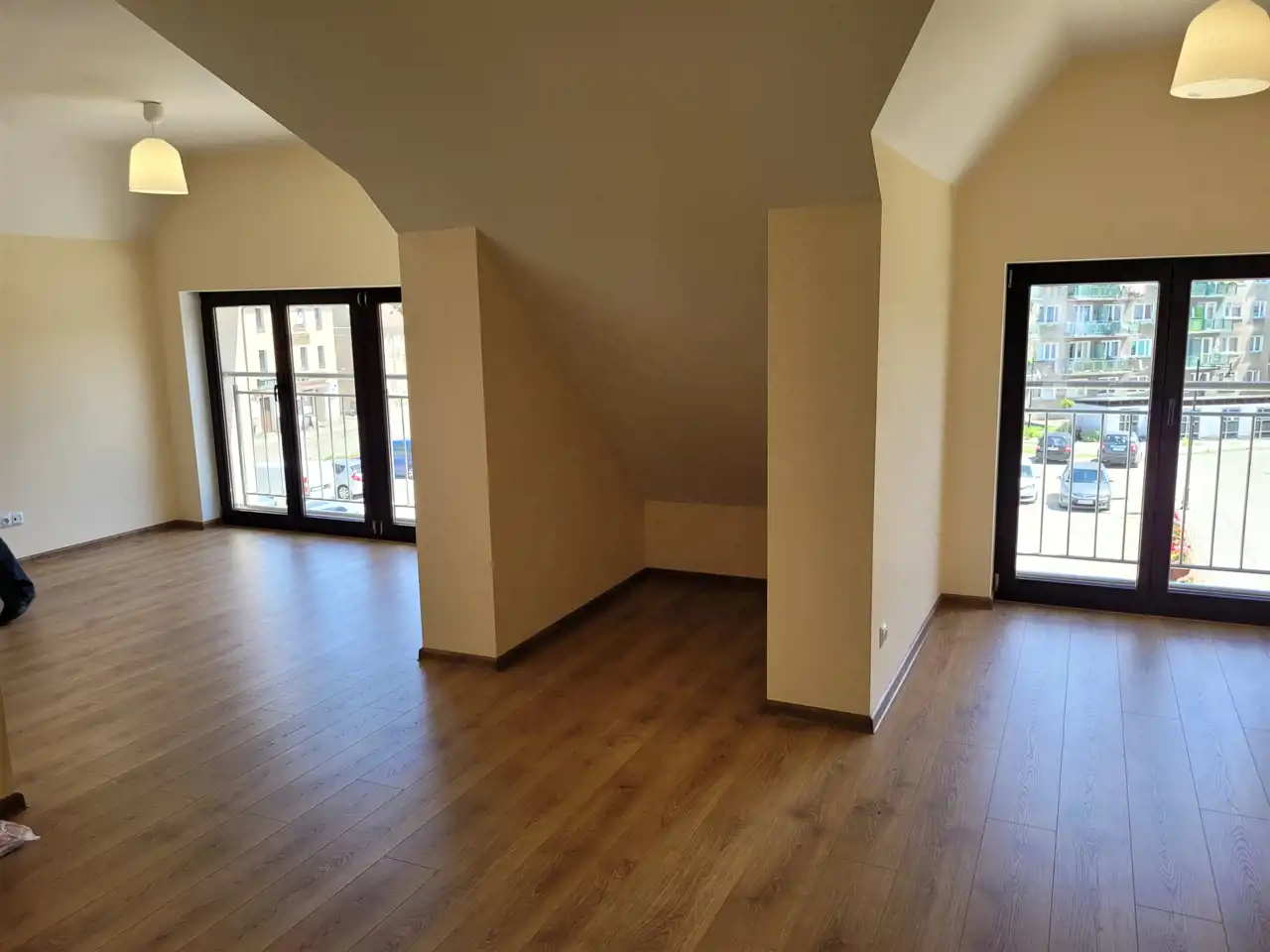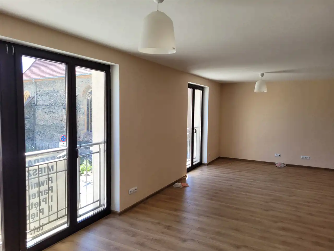 Mieszkanie trzypokojowe o pow 76,70 m2 usytuowane na pierwszym piętrze budynku położnego w centrum Strzegomia. Budynek zbudowany z cegły, docieplony styropianem gr. 15 cm. Mieszkania posiadają balkony oraz witryny, wykończone panelami, ściany wykonane z tynku cementowo-wapiennego, gładzone. Duży pokój z aneksem kuchennym. Łazienka razem z wc, wyposażona w kabinę natryskową wykończona glazurą.