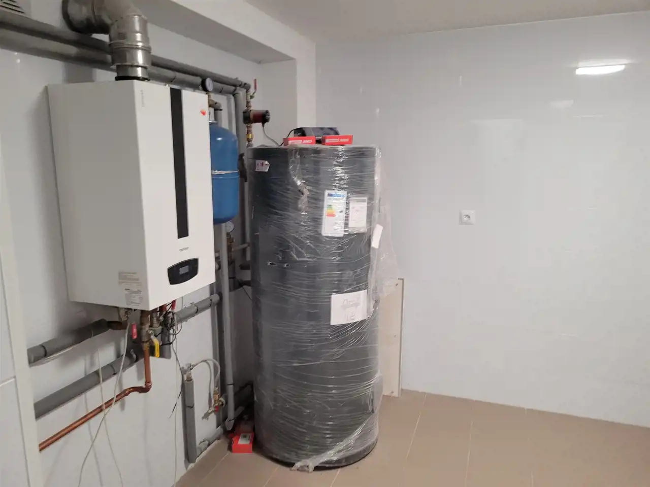 Ogrzewanie podłogowe, wspólna kotłownia gazowa w budynku. Dodatkowo w każdym mieszkaniu zamontowano klimatyzację typu SPLIT.