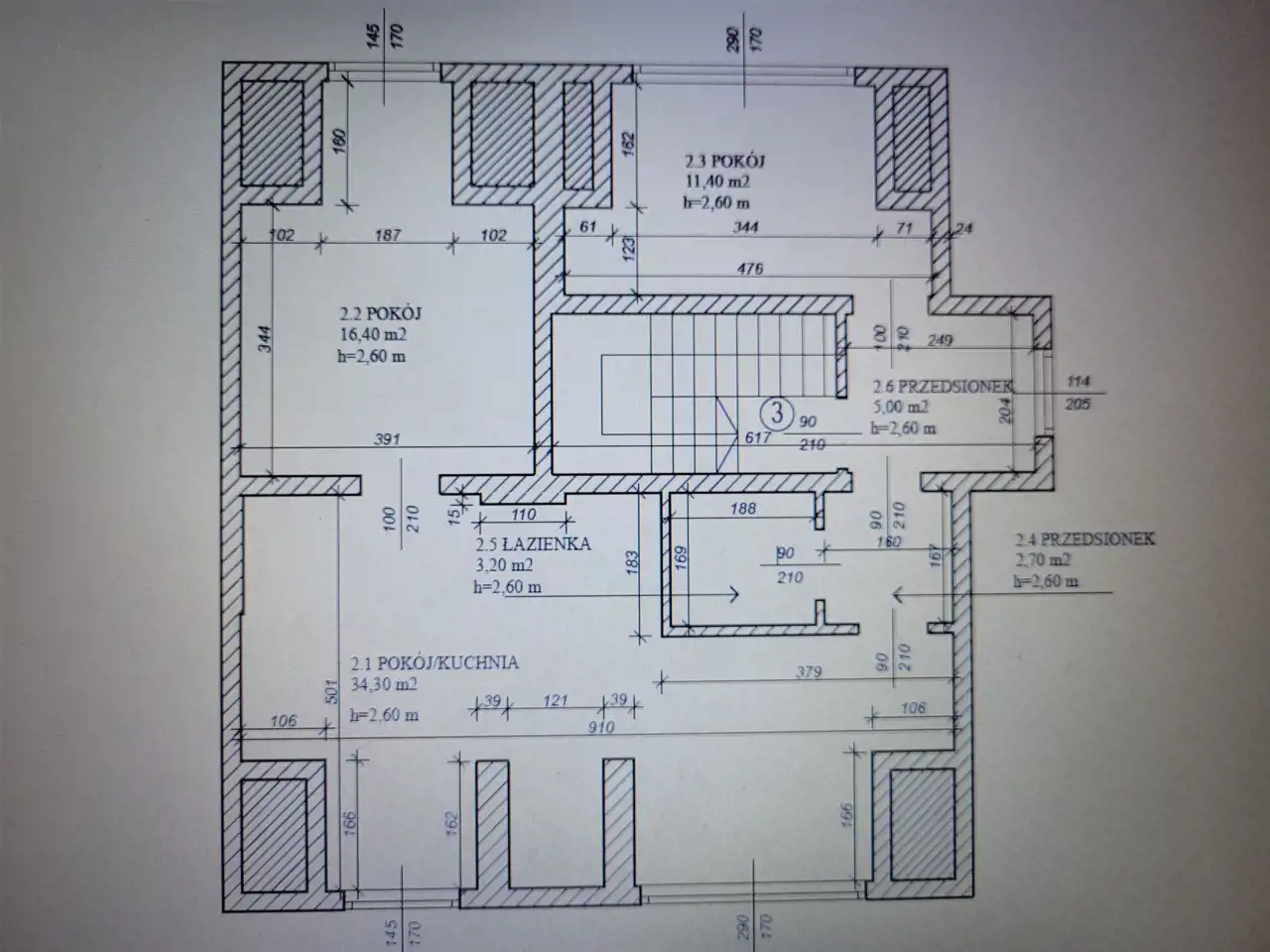 Drugie mieszkanie trzypokojowe o pow. 73 m2 położone jest na drugim piętrze.