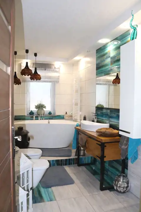 - widna łazienka z prysznicem toaletą, bidetem, umywalką,