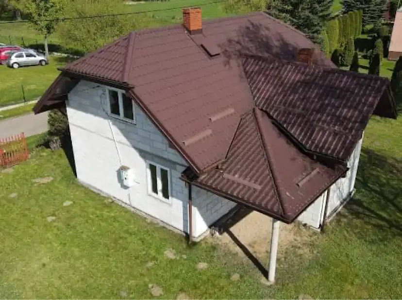 Budynek został zadaszony blachodachówką i wyposażony w stolarkę okienną. Projekt domu przewiduje możliwość adaptacji poddasza na cele mieszkalne oraz dobudowę kotłowni przylegającej do bryły budynku. Działka jest uzbrojona w media: prąd, wodociąg i kanalizację.