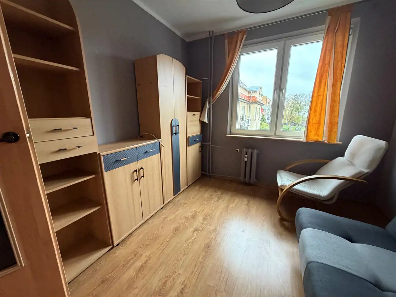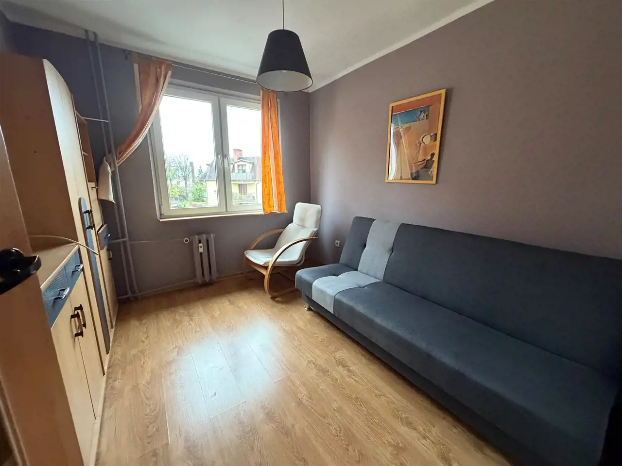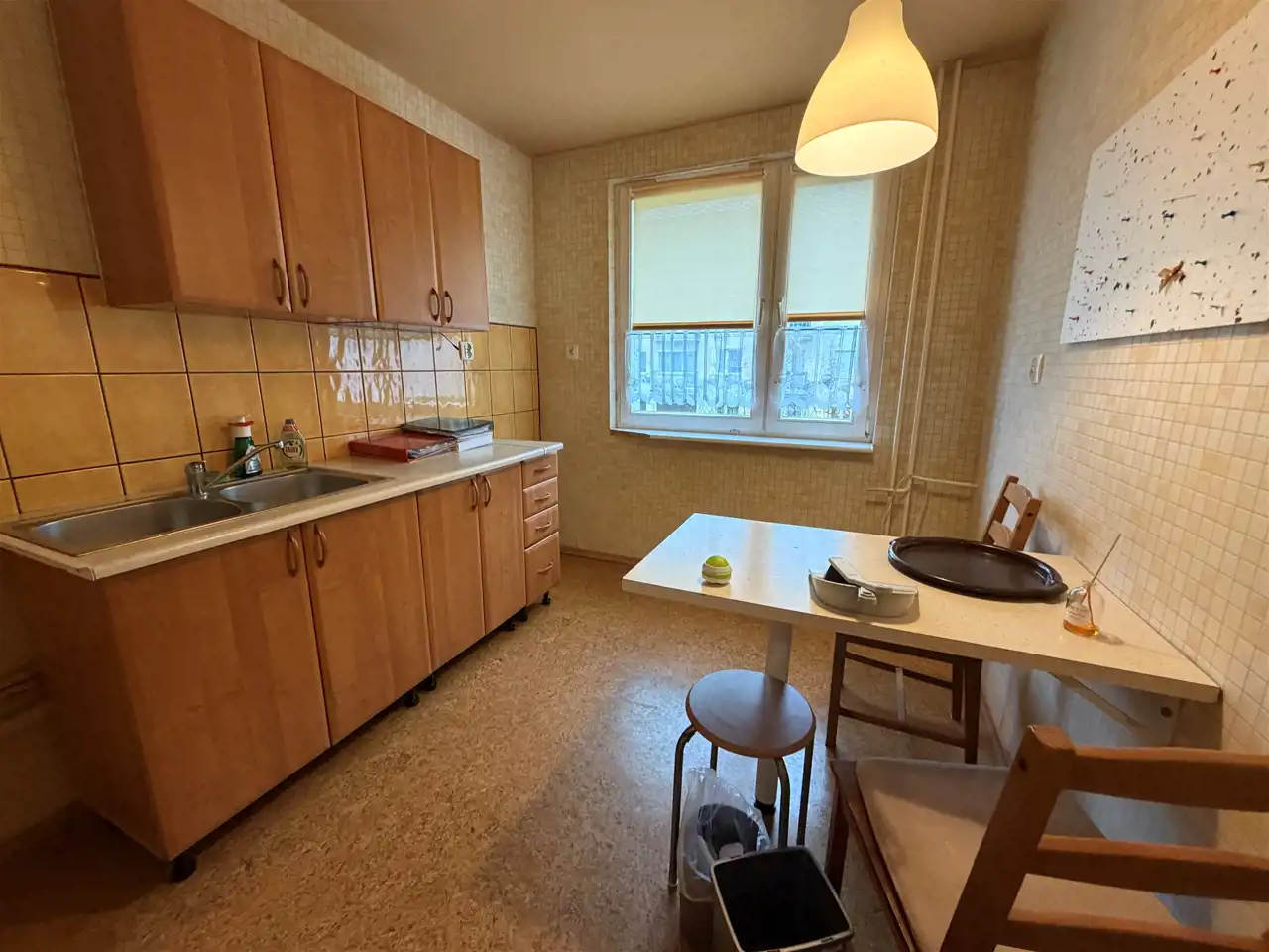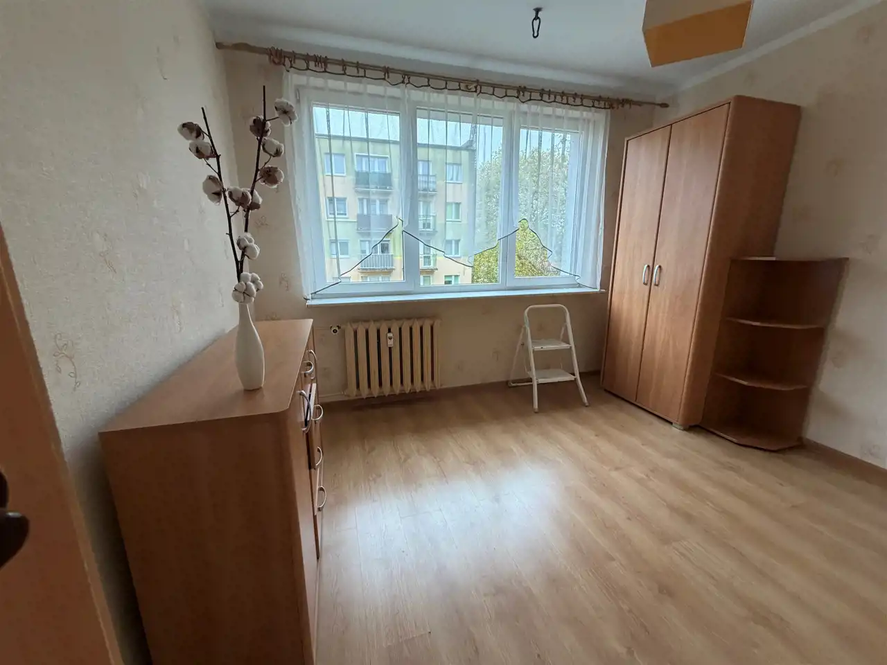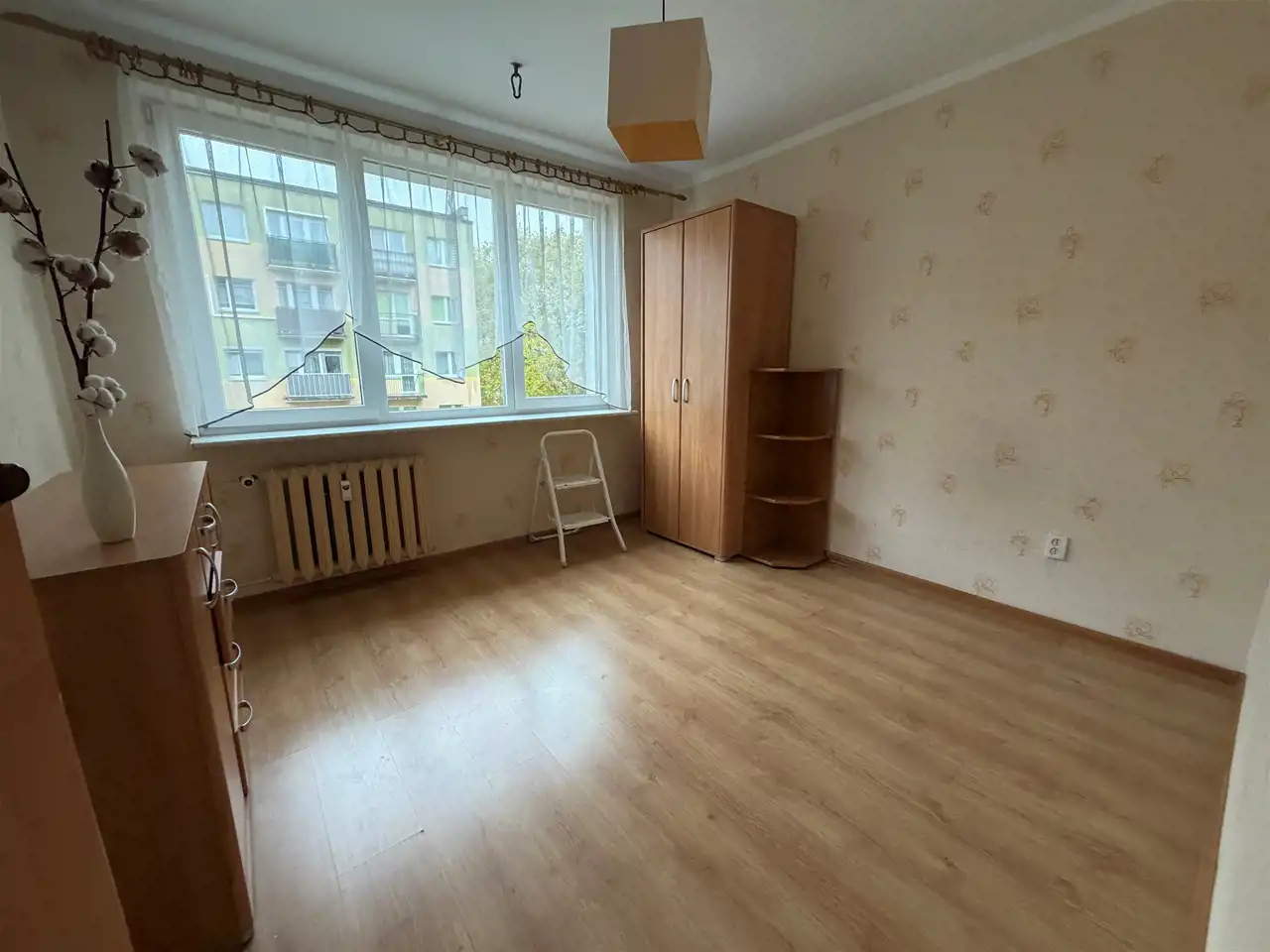 Wnętrze wymaga odświeżenia, co daje nowemu właścicielowi możliwość stworzenia własnego, niepowtarzalnego stylu. Duże okna zapewniają naturalne oświetlenie, a położenie na wyższym piętrze gwarantuje prywatność i przyjemny widok z okien.