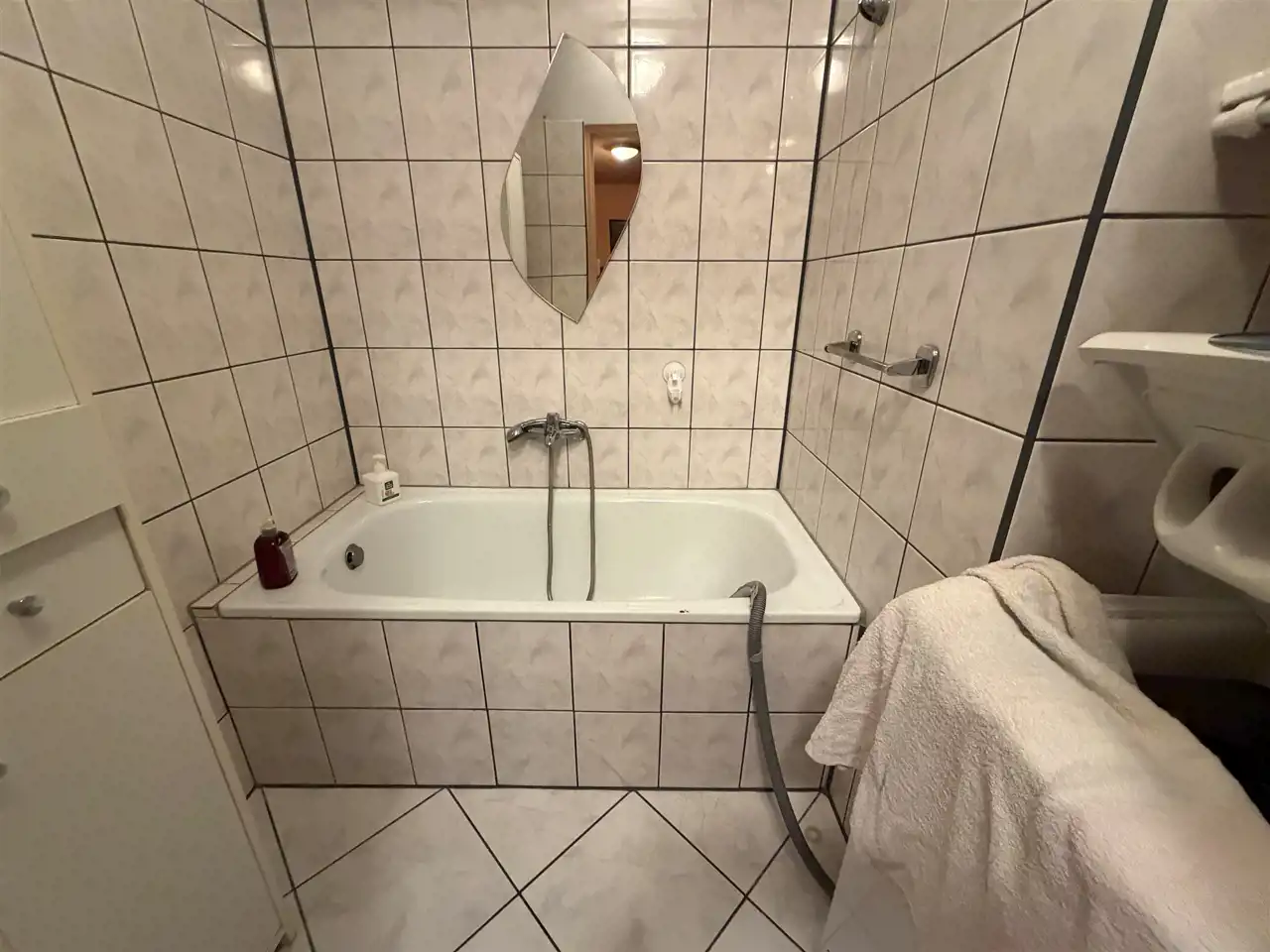 Mieszkanie posiada miejskie centralne ogrzewanie i bojler elektryczny do podgrzania wody.