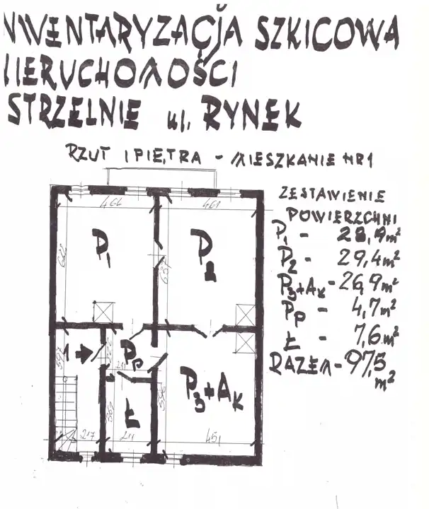 1. Lokal mieszkalny o pow. 97,5 m2 - I PIĘTRO
