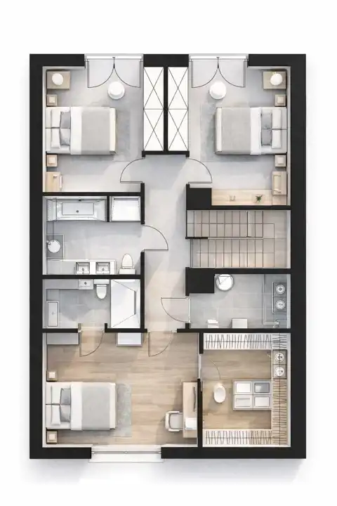 • 3 sypialnie: 12,77 m² | 13,05 m² | 16,16 m²