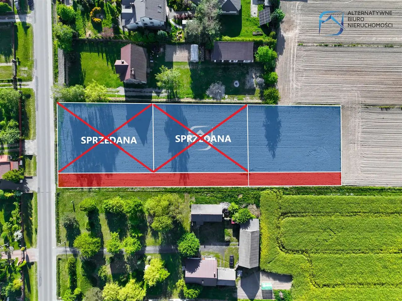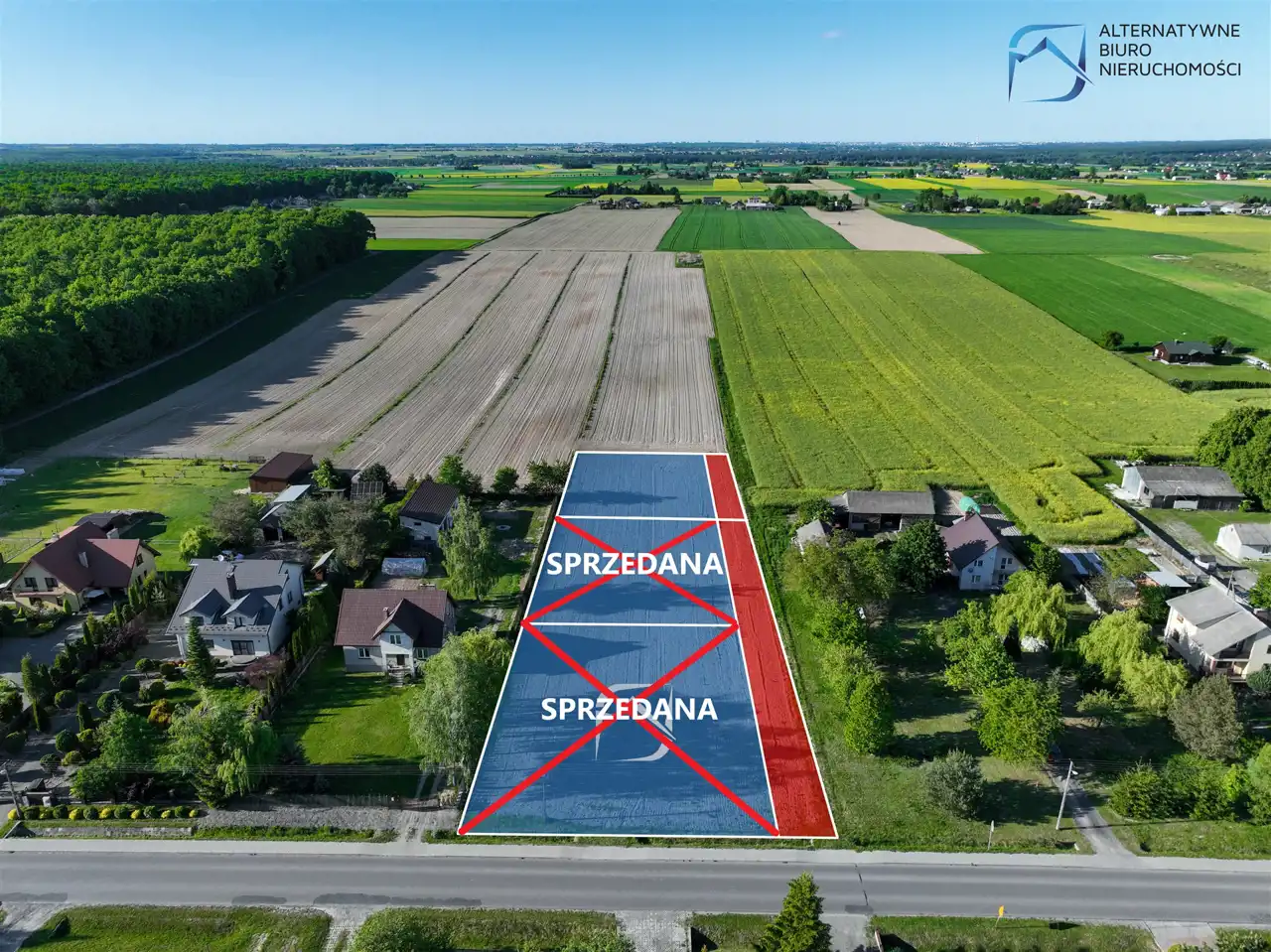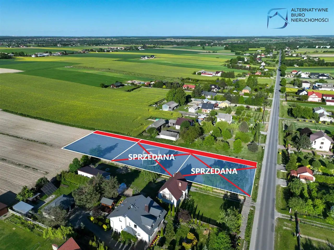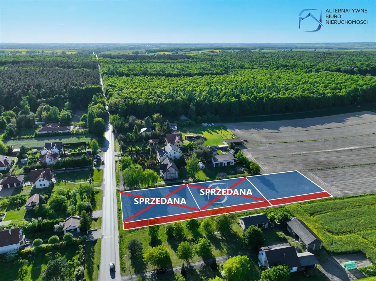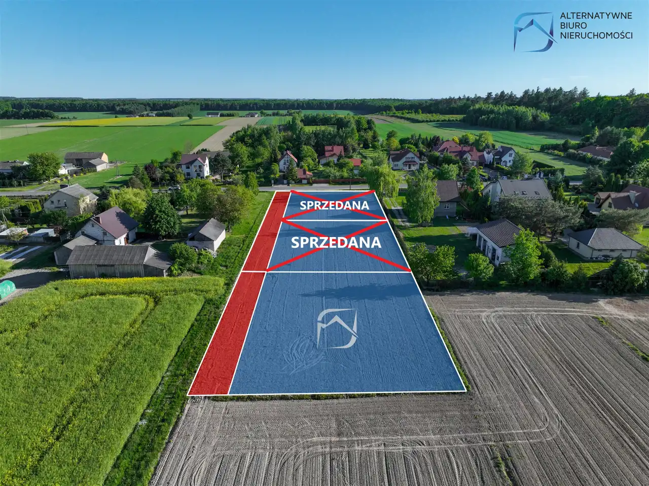 Powierzchnia każdej z prezentowanych nieruchomości wynosi 1121 mkw, a szerokość frontu to 30 m. Działki mieszczą się w pierwszej, drugiej i trzeciej linii zabudowy, od drogi powiatowej. Dojazd do nich zapewnia wydzielona droga wewnętrzna.
