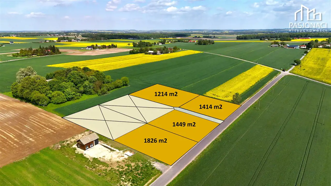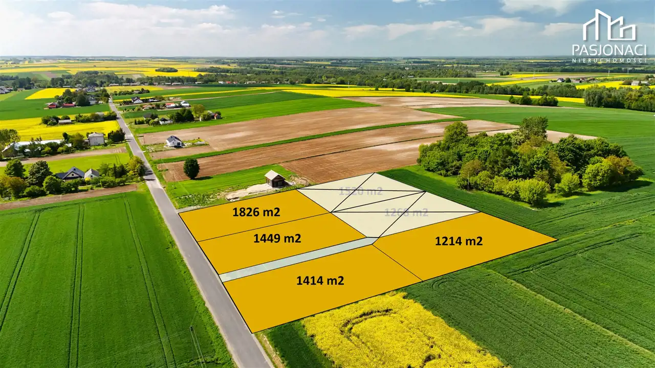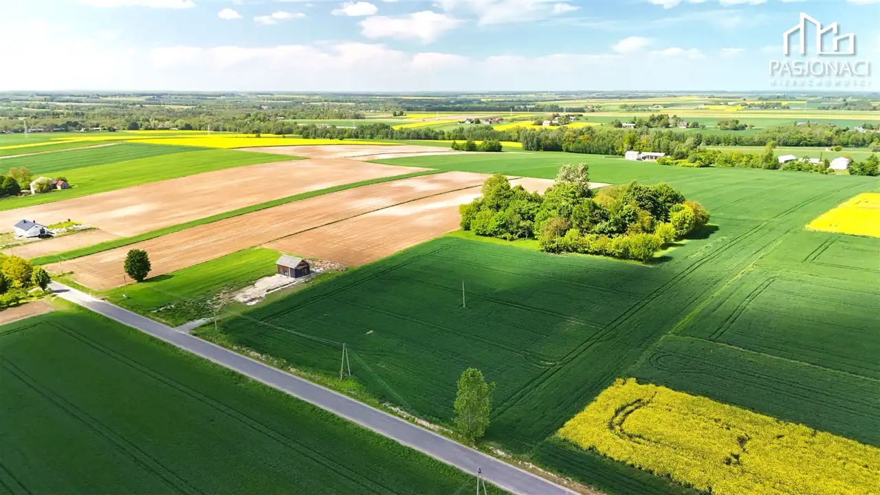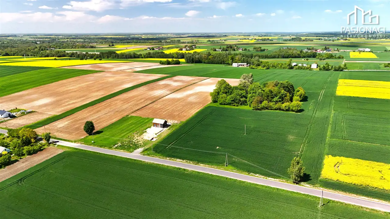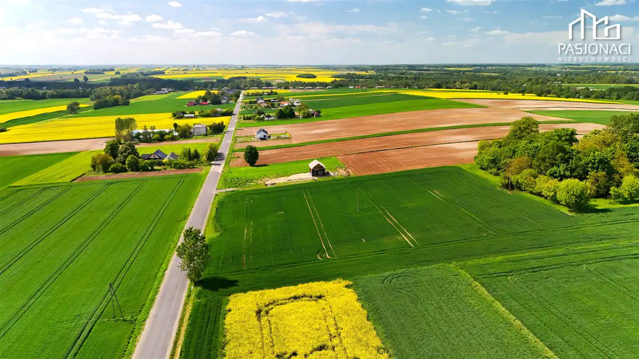 Działki położone są w zielonej, spokojnej okolicy, wśród pojedynczych zabudowań jednorodzinnych i rozległych terenów rolnych.