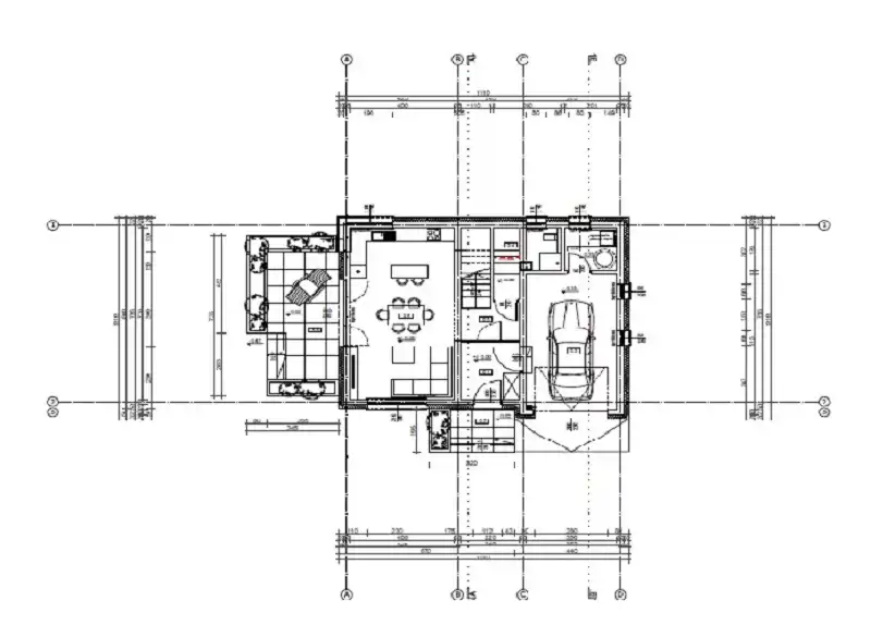 Parter: salon z kuchnią, hol, łazienka, kotłownia, , garaż- jednostanowiskowy