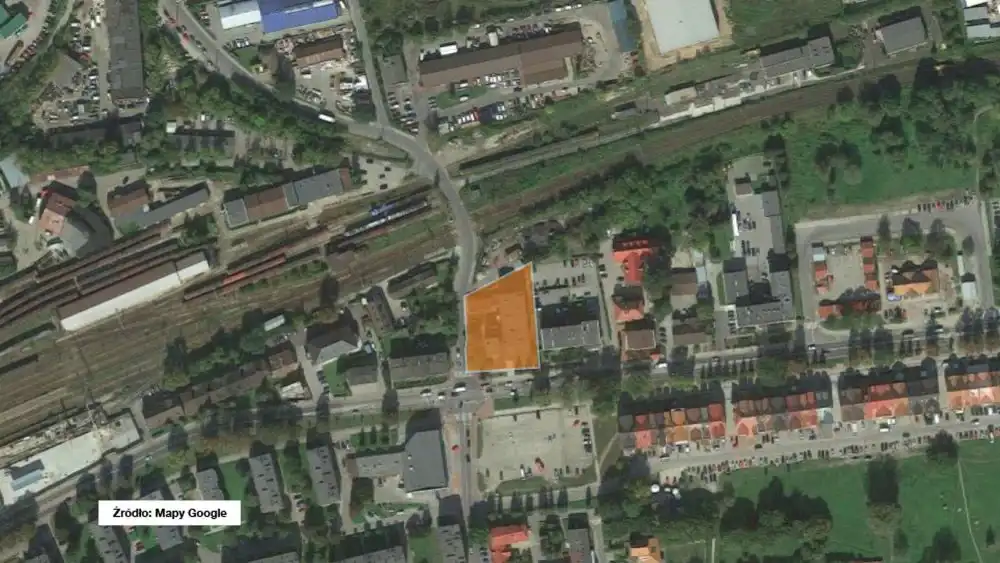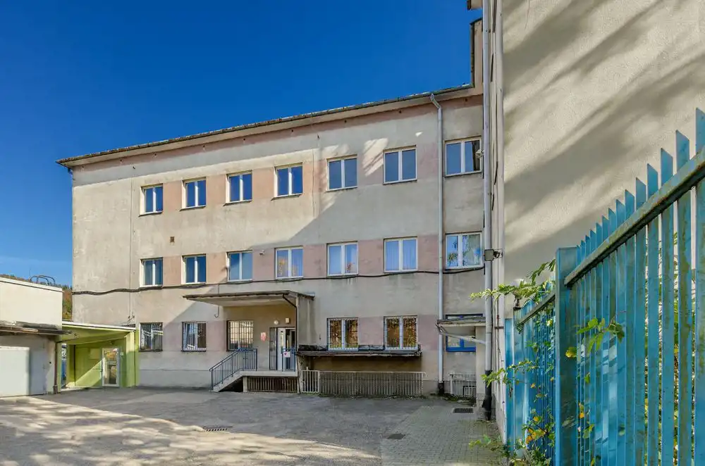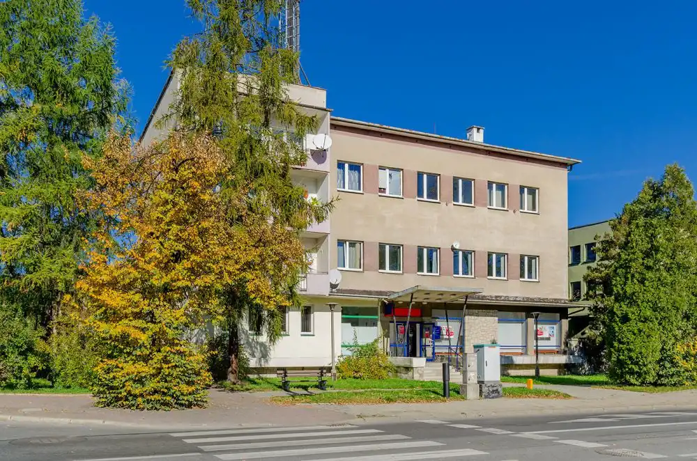 Budynek biurowo-mieszkalny w Suchej Beskidzkiej, w pobliżu dworca kolejowego.