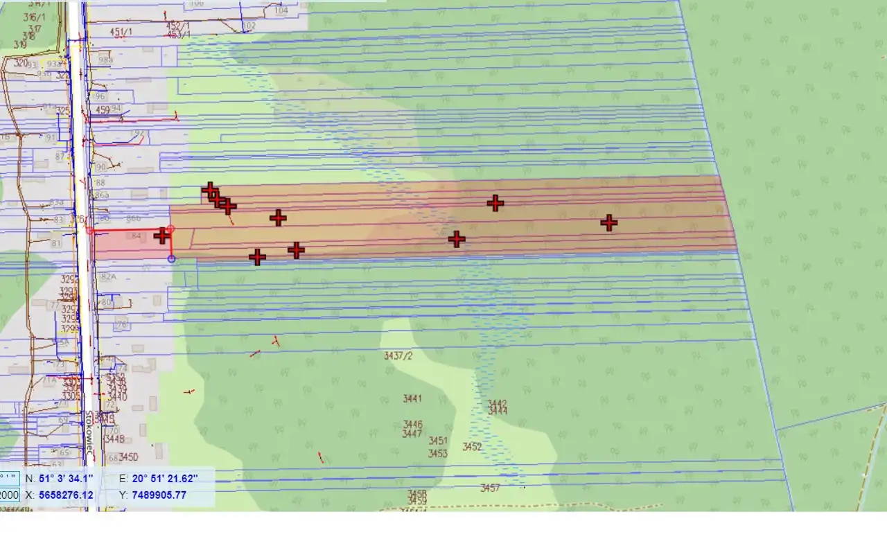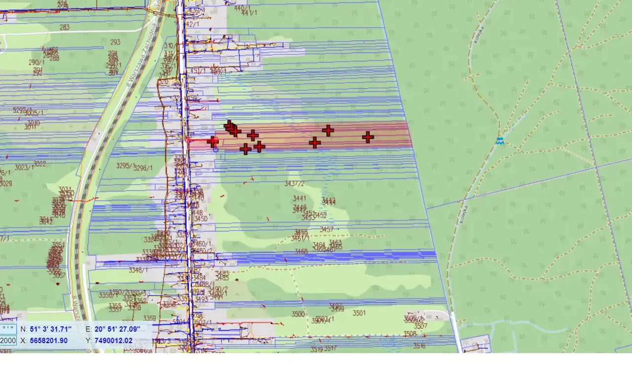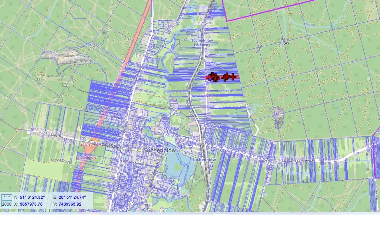 For sale: A plot of land with a total area of 36,051 m², located in Suchedniów. The property consists of 10 adjacent parcels. It is situated on the front line relative to a municipal asphalt road, with direct access to it.