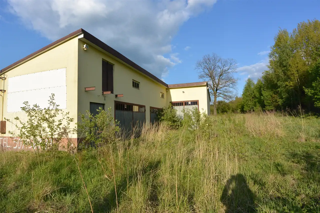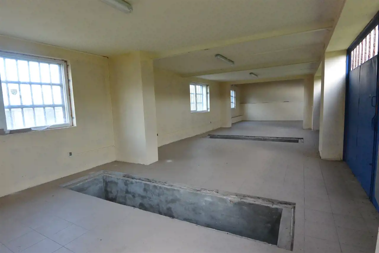 The plot is flat, of irregular shape, partially developed, and partially fenced. On the property, there is a multi-bay car workshop (with 3 inspection pits) with 3 entrance gates. The developed part is also fenced. The remaining part of the land is available for development.