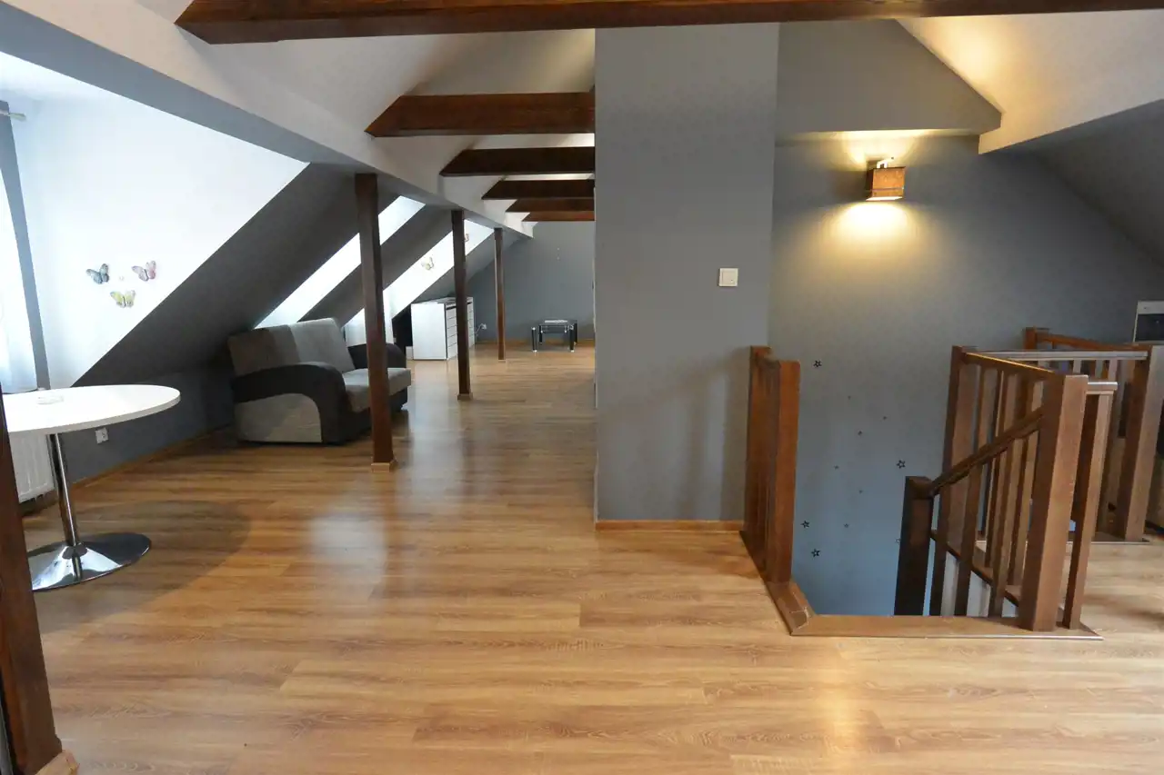 Parter budynku o powierzchni ok. 110 m2 przeznaczony pod działalność handlowo-usługową, poddasze stanowi otwarta powierzchnia o powierzchni ok. 100 m2 zagospodarowana jako część mieszkalna. Budynek częściowo podpiwniczony, z garażem jednostanowiskowym o powierzchni ok. 20 m2 (wjazd od tylnej części budynku).