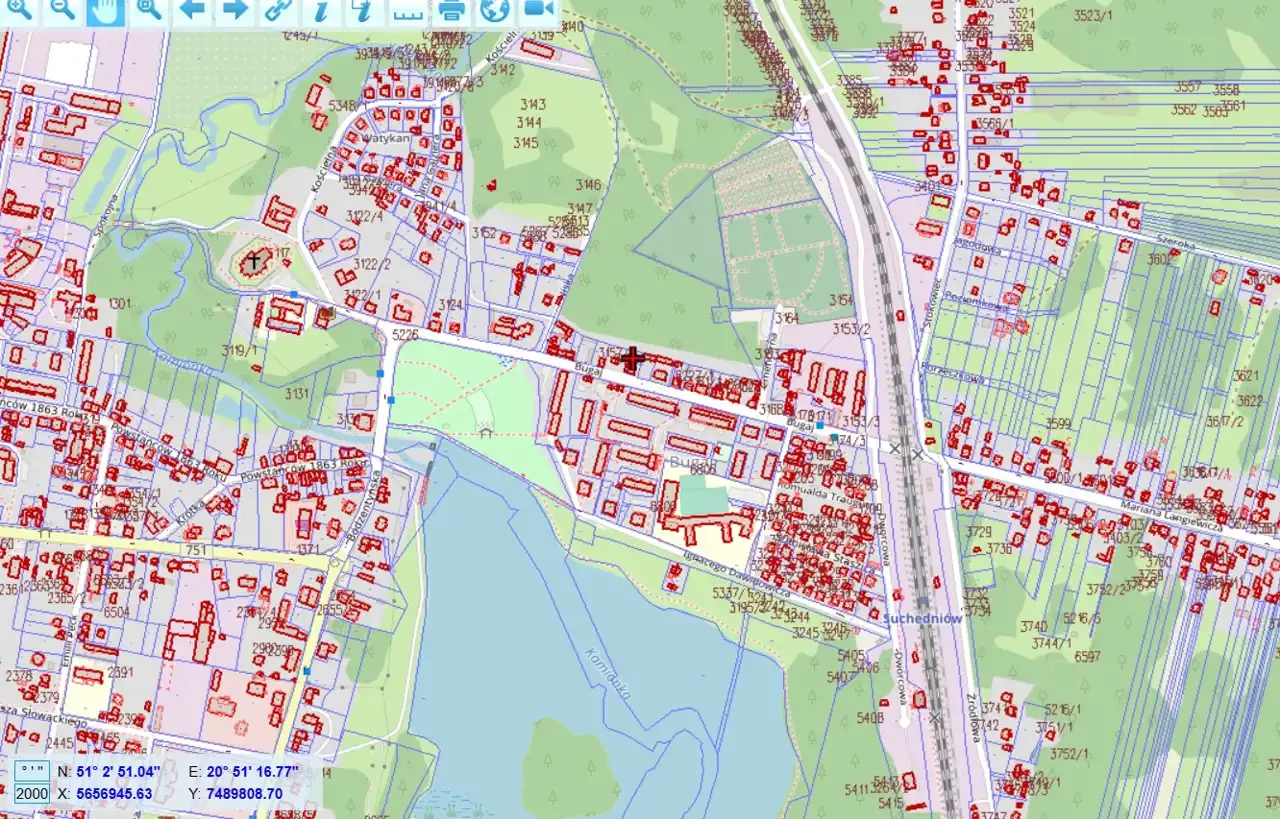 Due to its layout and location, the property is ideal for commercial/service activity combined with residential use. The front part is directly by a busy street, while the rear borders a forest (with direct access). Nearby: apartment blocks, single-family housing, school, city park, and Zalew Kamionka reservoir.