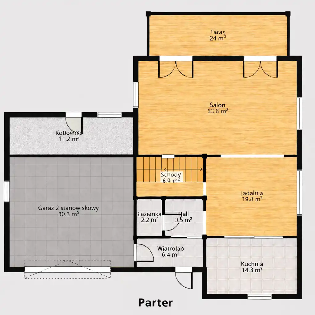 - Garaż (2 stanowiska) - 30,3 m2