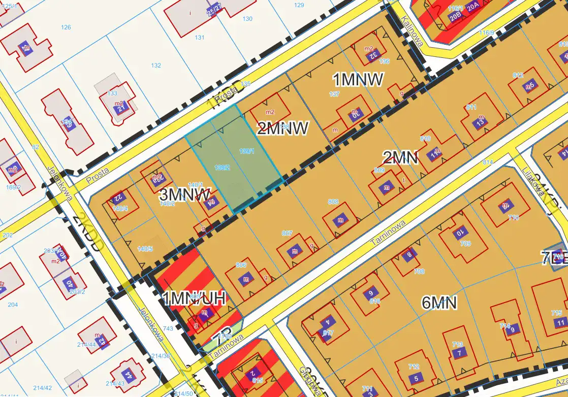 Grunt ma powierzchnię 820m2 i objęty jest MPZP, zakładającym zabudowę mieszkaniową wolnostojącą.