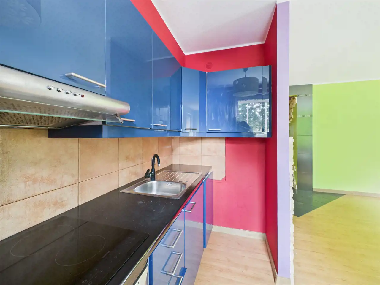- Kuchnia: otwarta, z opcją jej zamknięcia lub wydzielenia spiżarni; wyposażona w płytę indukcyjną, piekarnik elektryczny, zmywarkę i mikrofalówkę