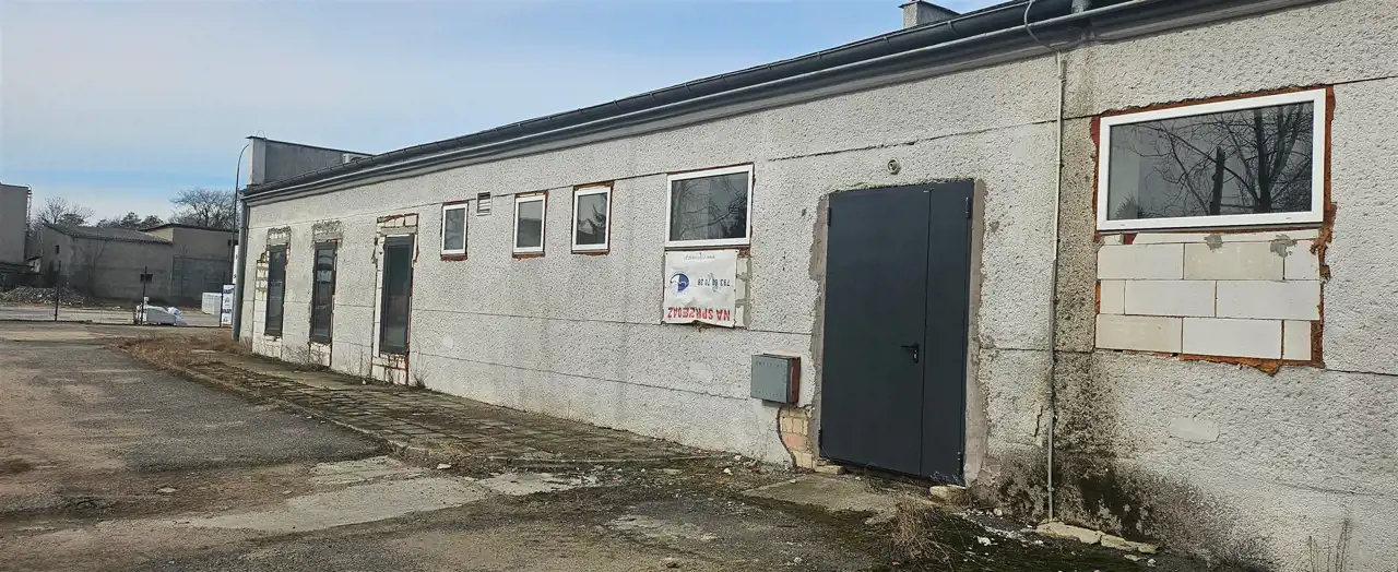 Hala magazynowo - produkcyjna o powierzchni 1430,00 m2, unowocześniona w 2022r, o konstrukcji betonowej (długość hali 56m, szerokość hali 25 m, słupy wsporcze dźwigarów rozstawione co 5,5,00 m, Posadzka niepyląca na bazie żywic epoksydowych o nośności 6tonkg/m2, pokrycie dachu z płyt blachy trapezowej docieplonej wełną mineralną / płyt warstwowych PW8, wzdłuż kalenicy kilka świetlik dachowych wysoki komin. Instalacja elektryczna oświetleniowa i zasilająca kW). Hala połączona funkcjonalnie z budynkiem administracyjno - biurowym.o powierzchni 300m wszystko w stanie do wprowadzenia