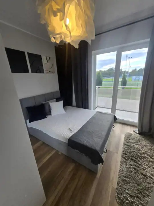 Duży balkon z dwoma wyjściami – z salonu i z sypialni.