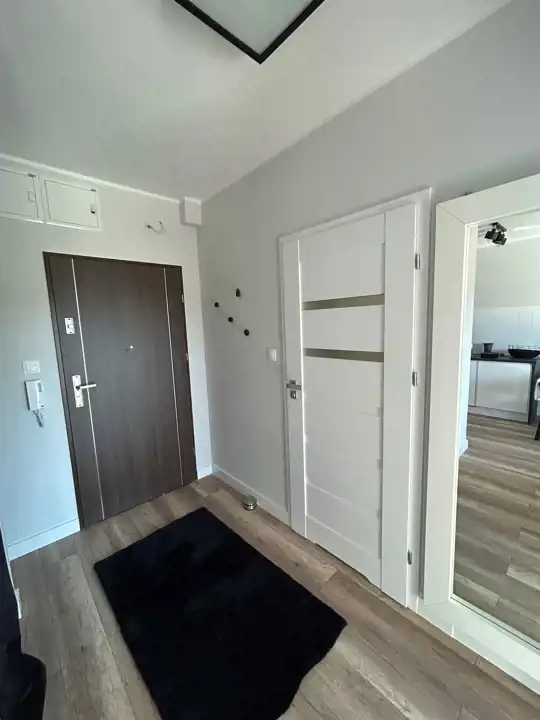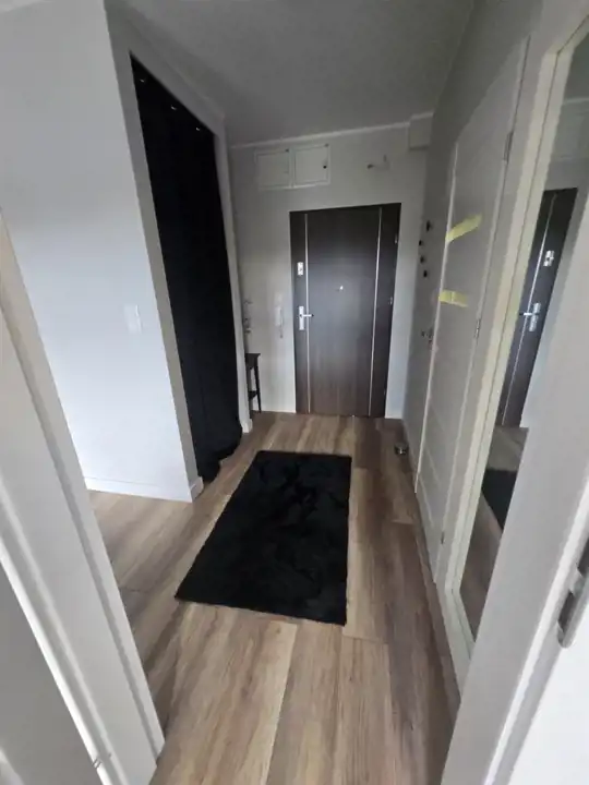 Przedpokój z szafą i lustrem.