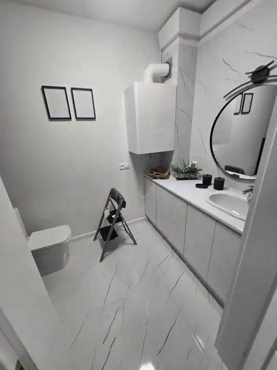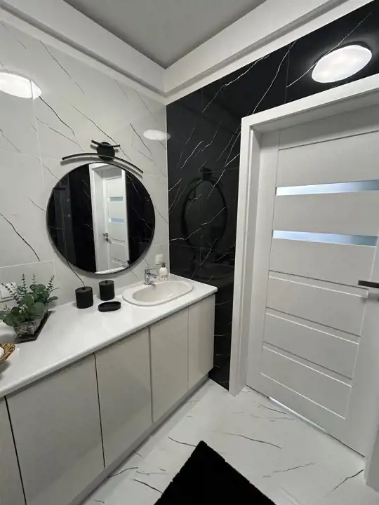 Nowoczesna łazienka, w pełni wyposażona.