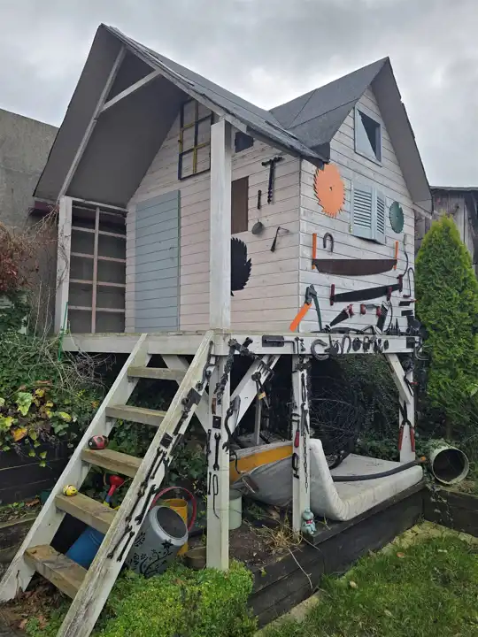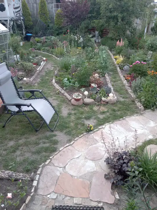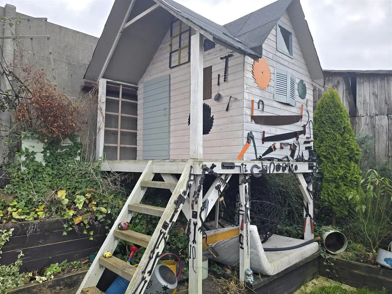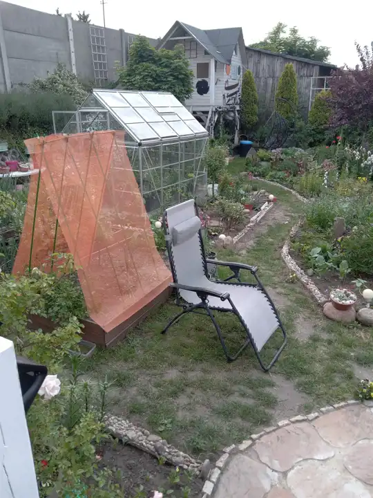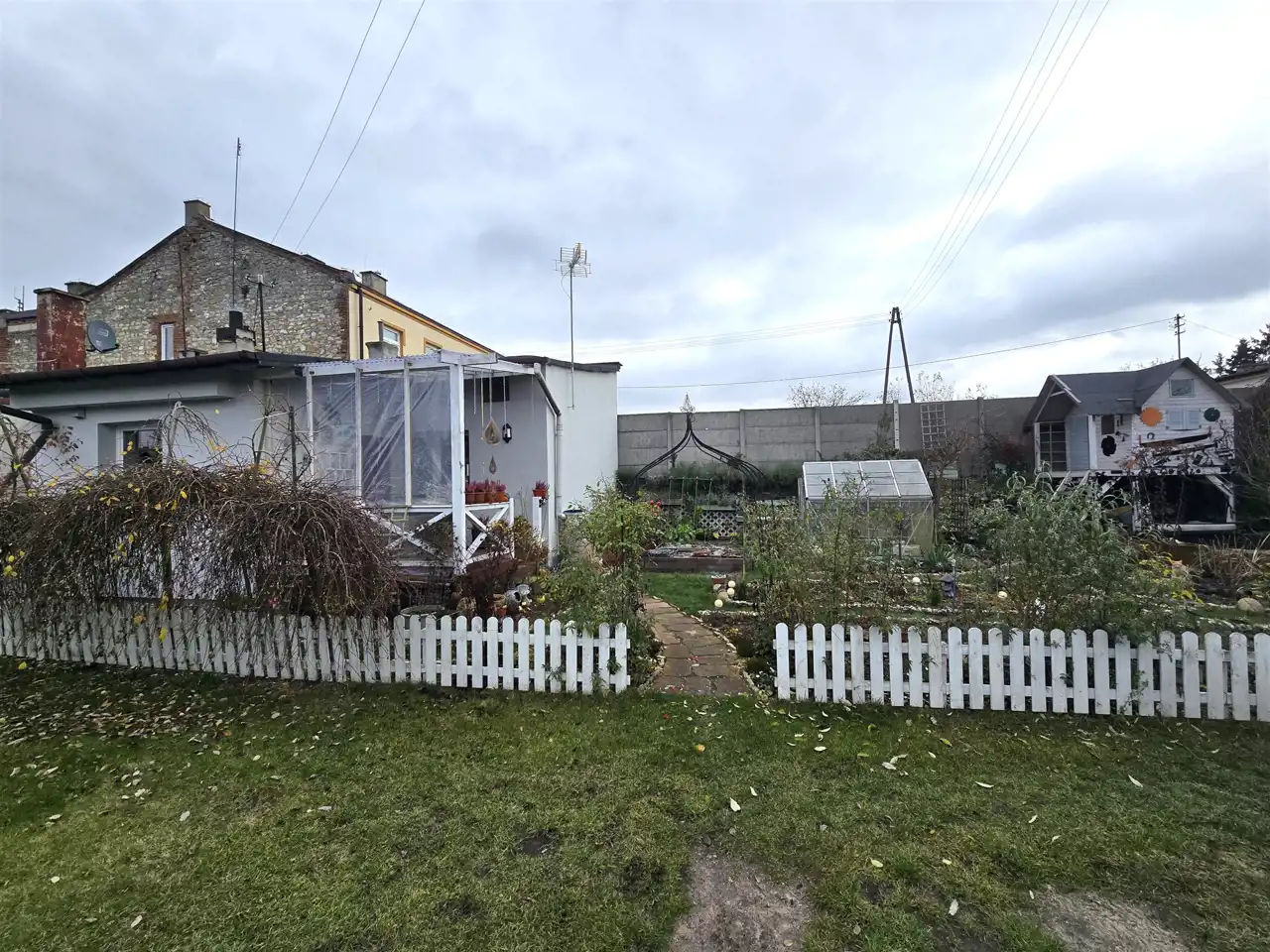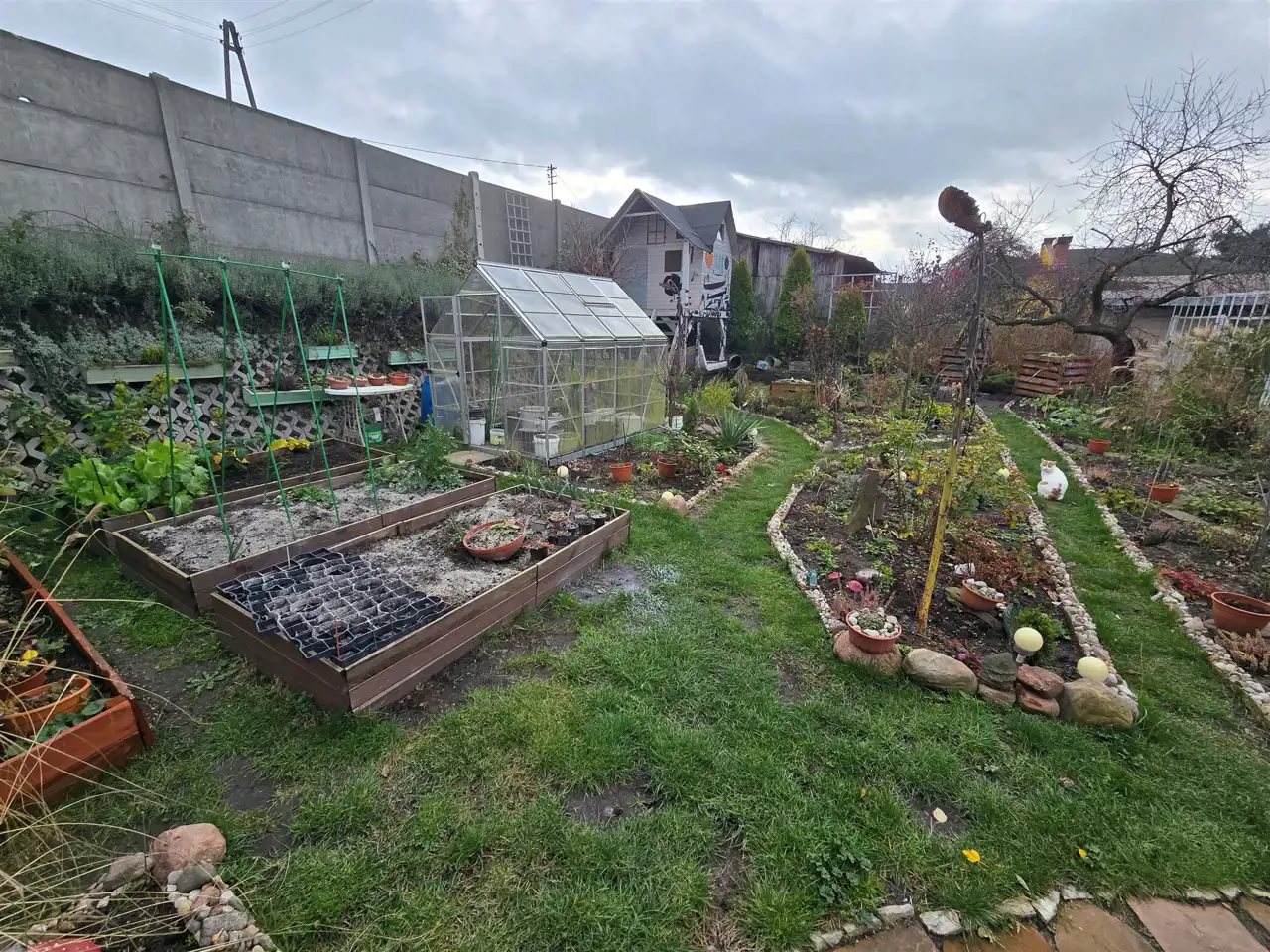 Na działce ogródek, domek dla dzieci.