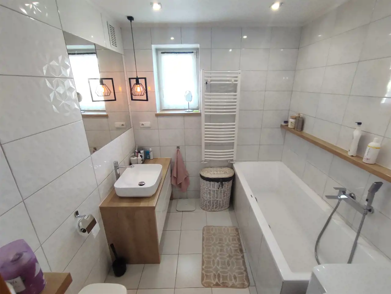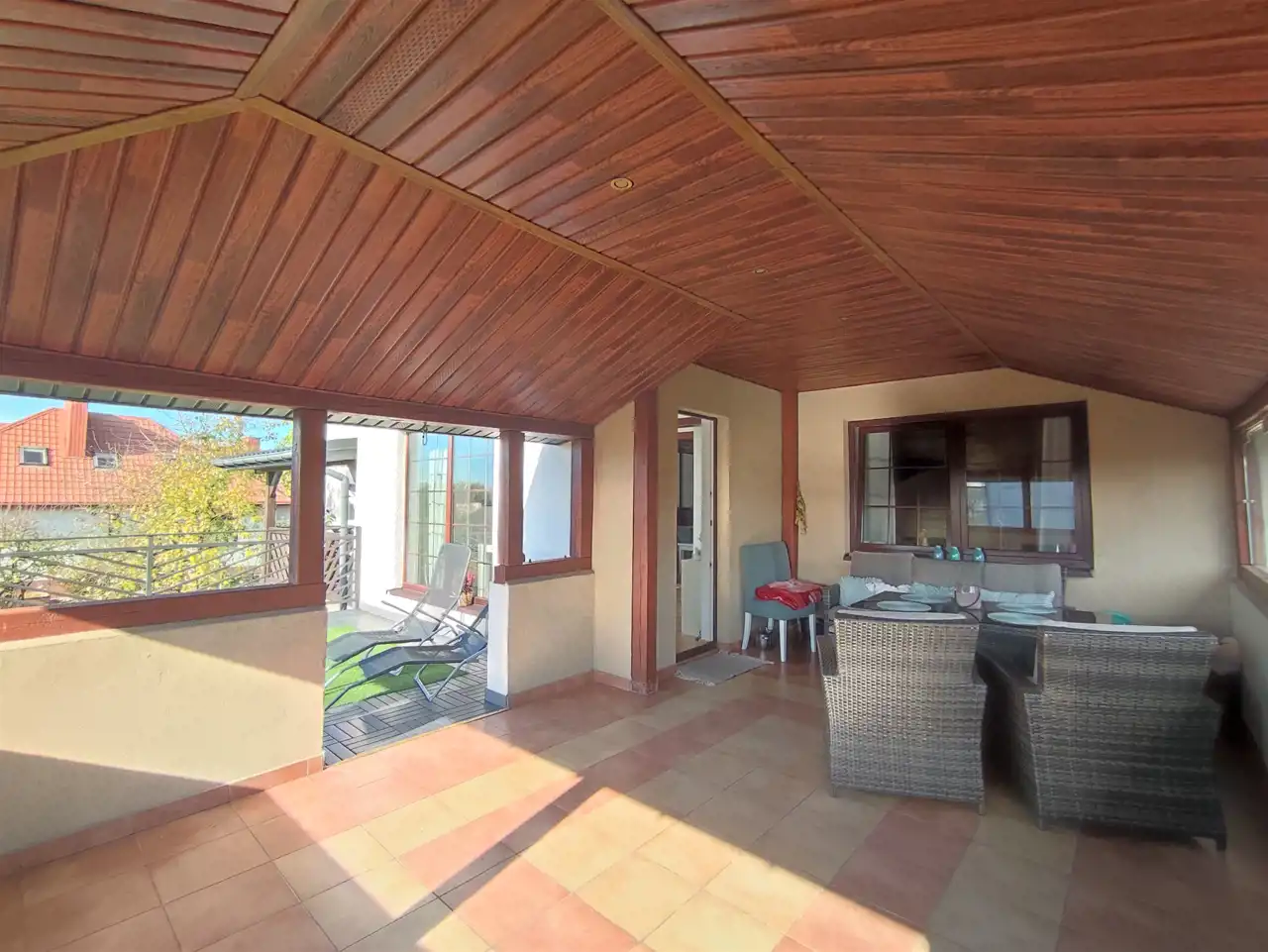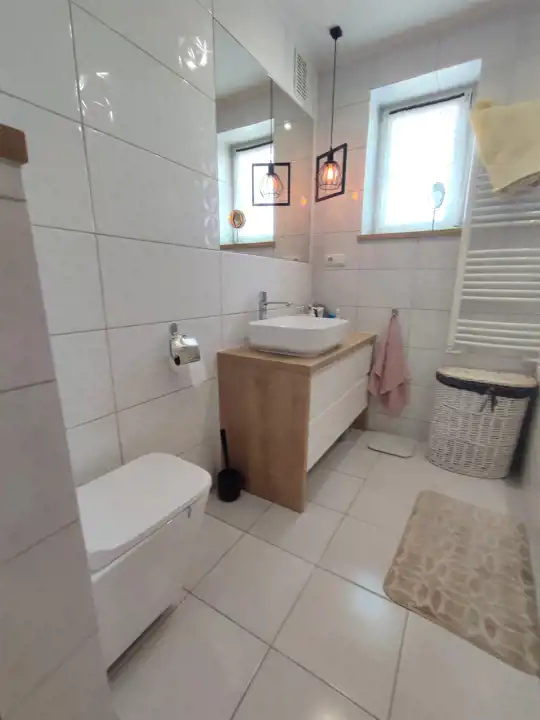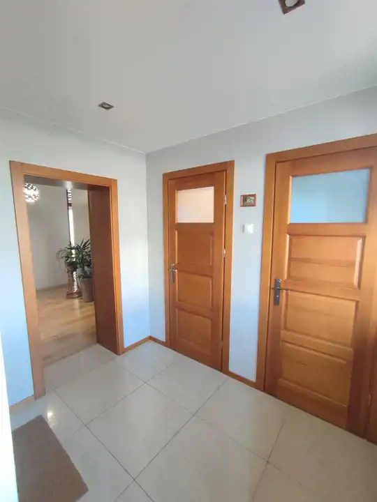Na podłogach nowe panele, łazienki po kapitalnym remoncie, drzwi wewnętrzne drewniane. Atutem domu jest część wypoczynkowa- tras.