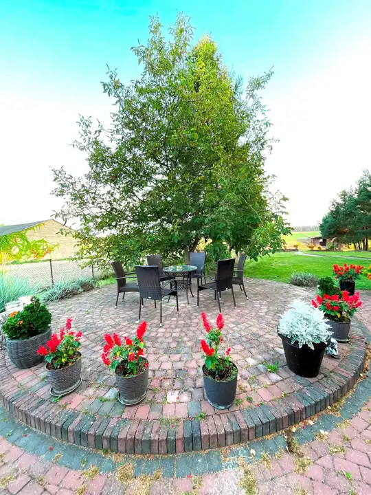 Do ogrodu można przejść z domu poprzez nieduży taras od strony południowej.