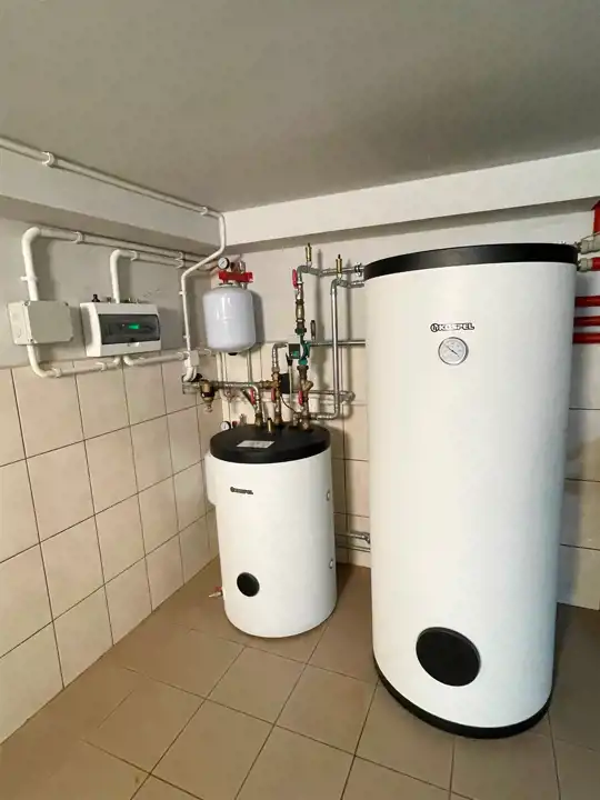 W budynku zastosowano nowoczesną, powietrzną pompą ciepła marki Netsu o mocy 12 KW co w połączeniu z instalacją fotowoltaiczną o mocy 8 KW (zainstalowana na tzw. starych zasadach) w dużym stopniu redukuje koszty ogrzewania.