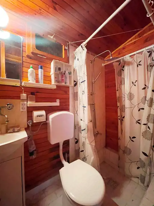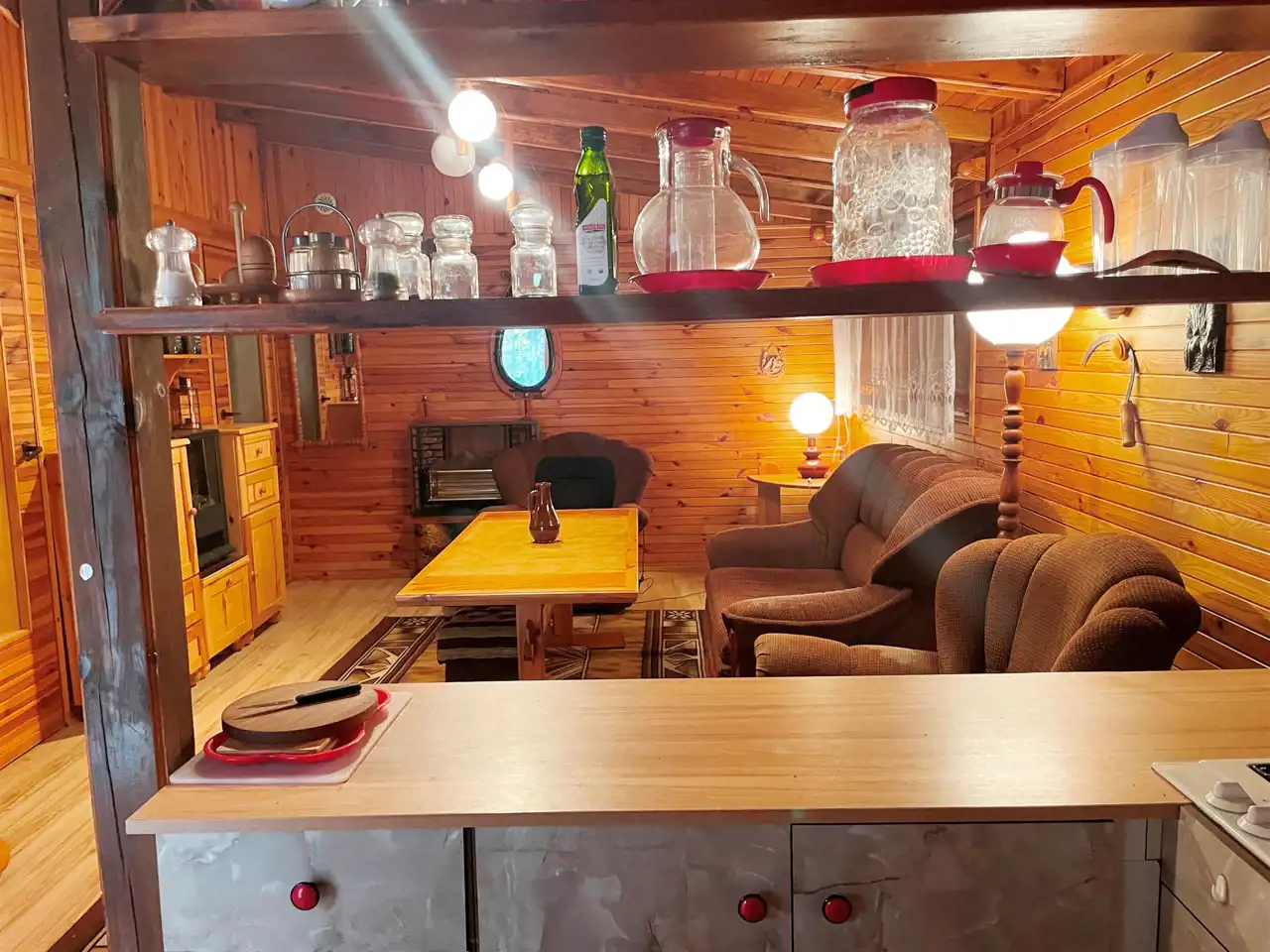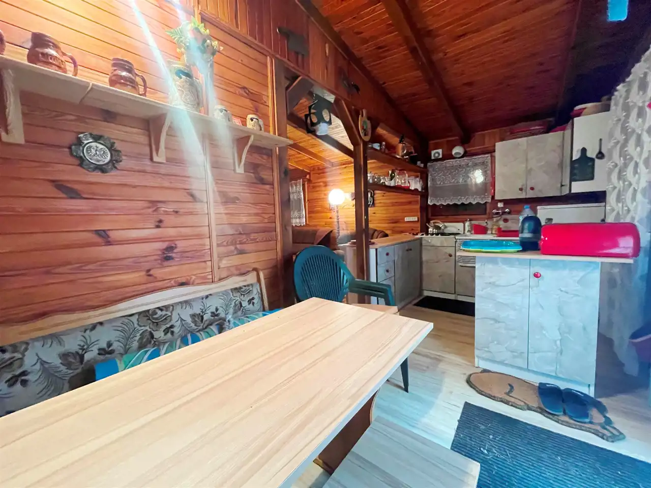 Domek składa się z dwóch sypialni, pokoju dziennego, kuchni, aneksu jadalnianego oraz łazienki.