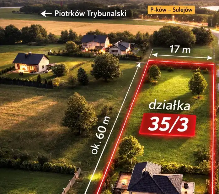 Na sprzedaż działka o numerze ewidencyjnym 35/3, położona w miejscowości Włodzimierzów przy ul. Polanka, w gminie Sulejów, powiat piotrkowski.