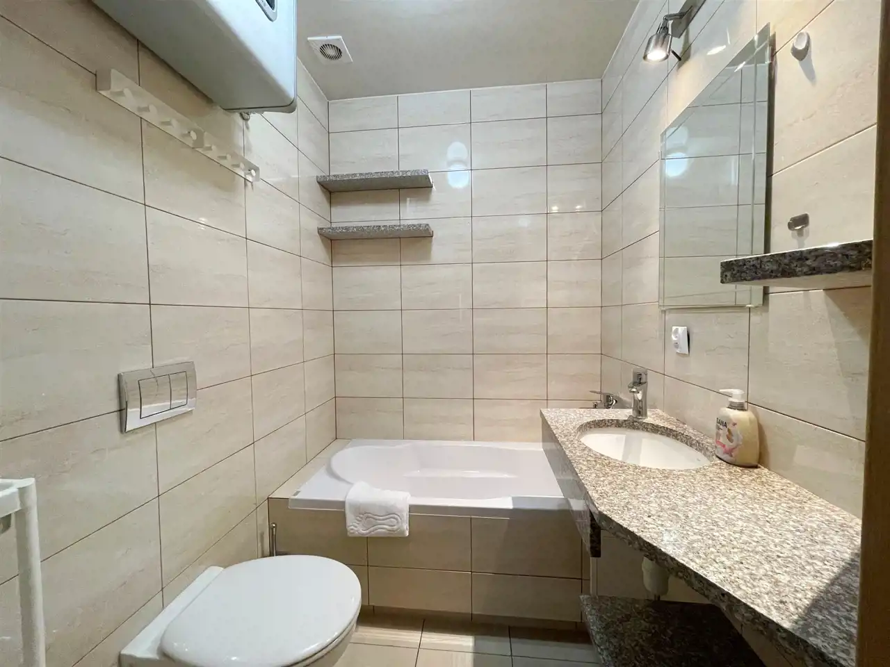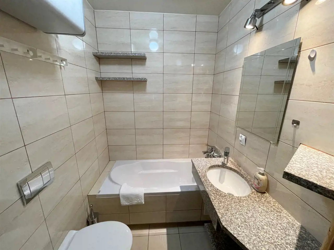 Szafki w łazience oraz parapety w całym mieszkaniu wykonano z granitu. Armatura łazienkowa jest również nowa.