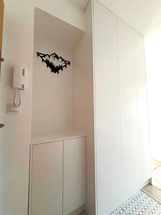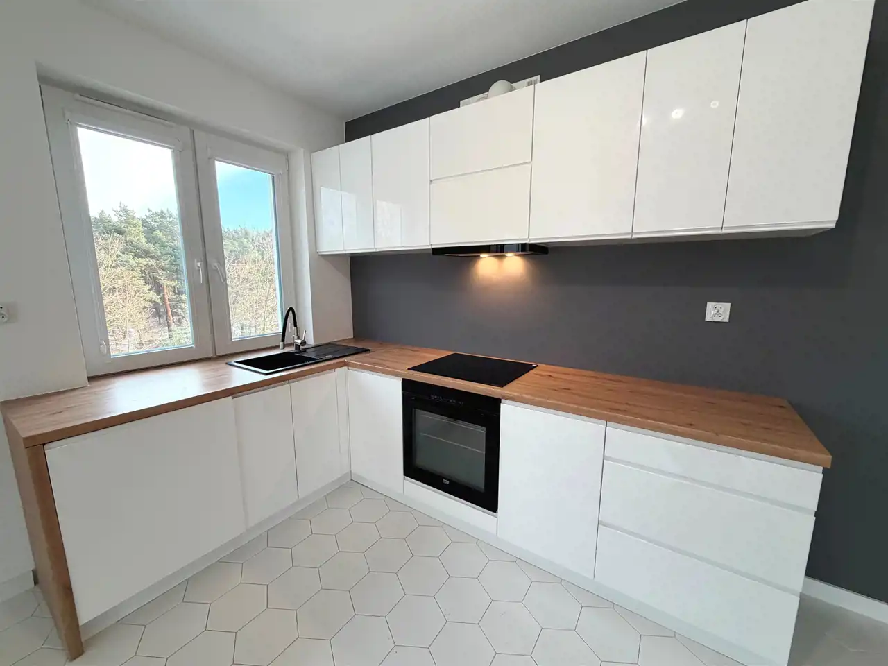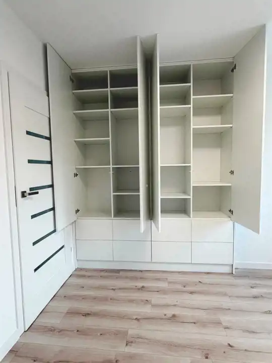 Cena ofertowa uwzględnia wszystkie meble i sprzęty AGD widoczne na zdjęciach. Meble kuchenne oraz szafy w zabudowie a także drzwi wewnętrze.