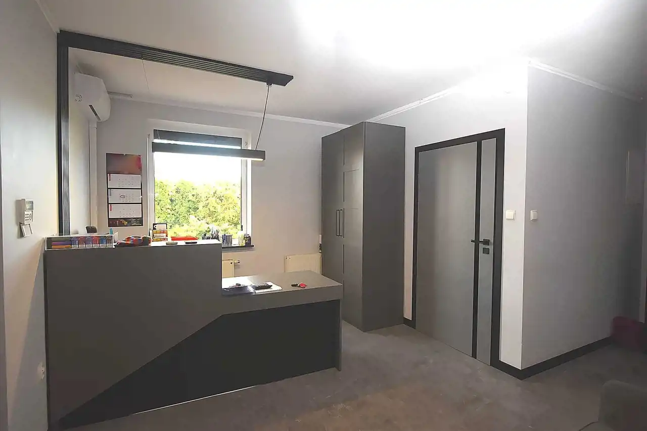 - Przemyślana aranżacja wnętrz biurowych i magazynowych - nowoczesna i dopracowana w każdym detalu, co czyni tę przestrzeń nie tylko wygodną w codziennym użytkowaniu, ale i niezwykle reprezentacyjną dla każdej firmy,