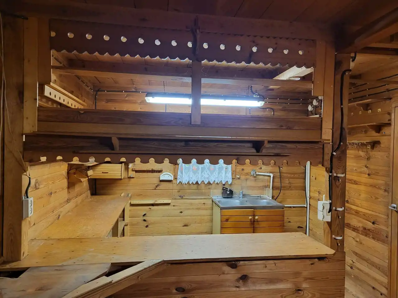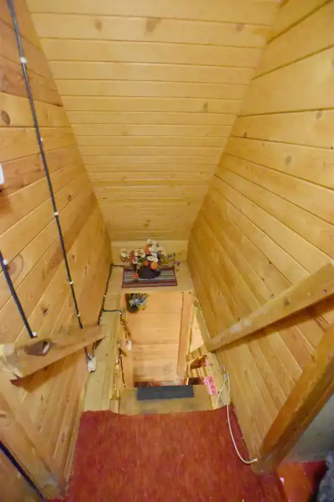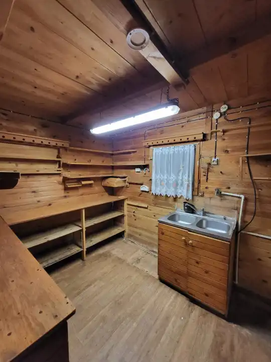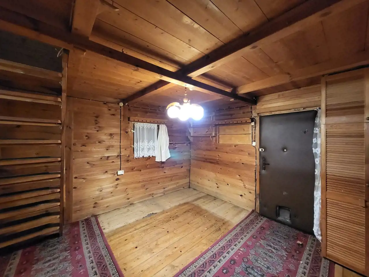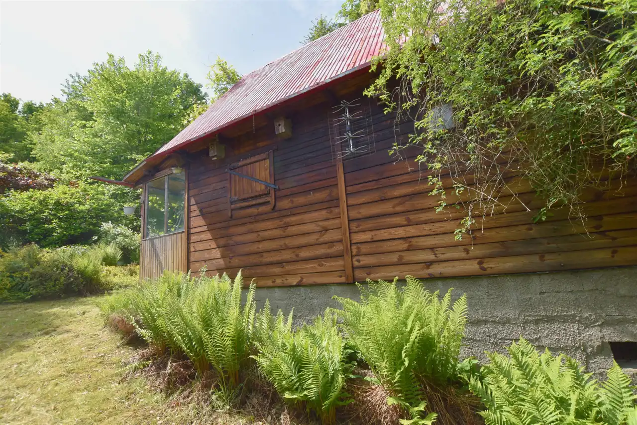 Budynek o powierzchni zabudowy 24 m2 z dodatkową werandą, drewniany na podmurówce, kryty blachą, dwukondygnacyjny.