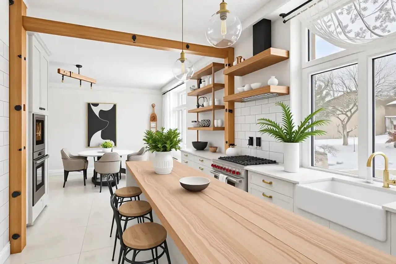 Podłogi- kuchnia i salon - wodne ogrzewanie podłogowe + gres; łazienki - terakota, pozostałe pokoje- deska bambusowa. Podłogi zostały położone na oryginalnych podłogach drewnianych i płytach MDF.