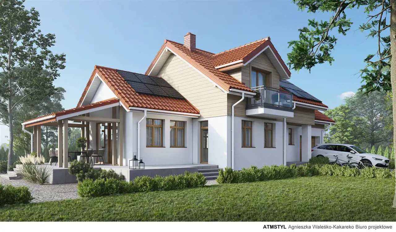 *Geometria dachu – dach dwuspadowy z ewentualnymi lukarnami i połaciami pośrednimi o kącie nachylenia od 25*do 45*