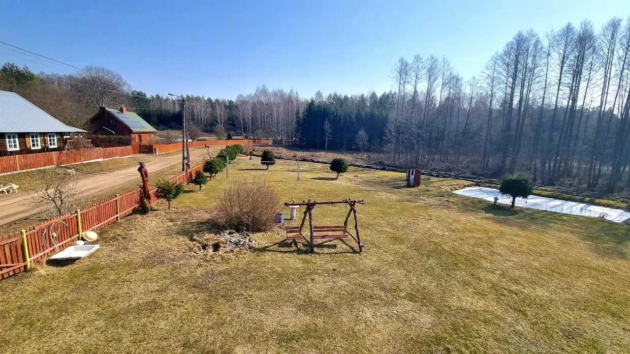Na działce siedliskowej o powierzchni 3 100 m2 znajduje się stary, drewniany dom wykorzystywany jako dom letniskowy. Dom do remontu lub rozbudowy.