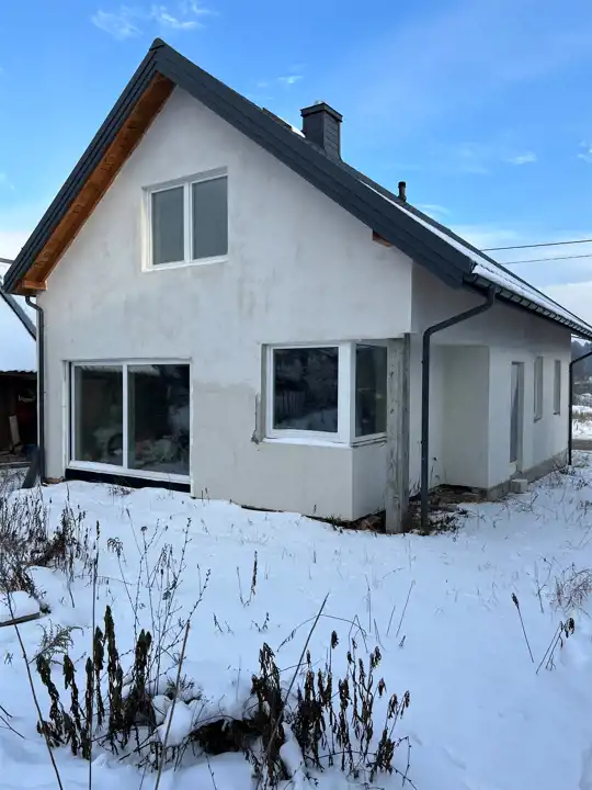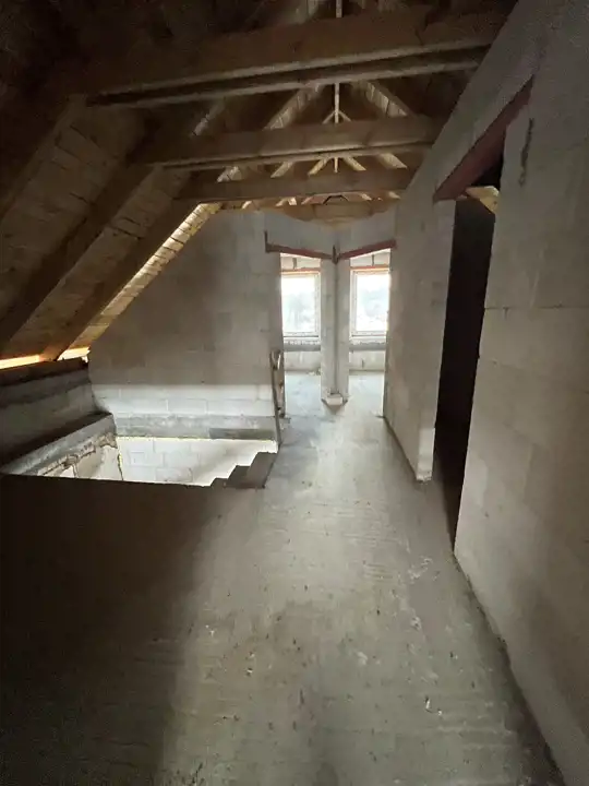 Obecnie dom jest w stanie surowym zamkniętym, z doprowadzonymi mediami (kanalizacja, woda, prąd).
