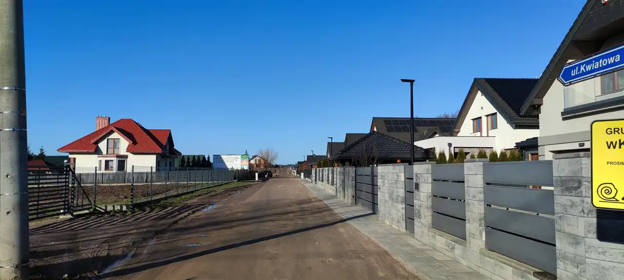 - Dojazd z ul. Kwiatowej (droga szutrowa) miasta ok. 500 m do nowoczesnej zabudowy w miejscowości Nowodworce.