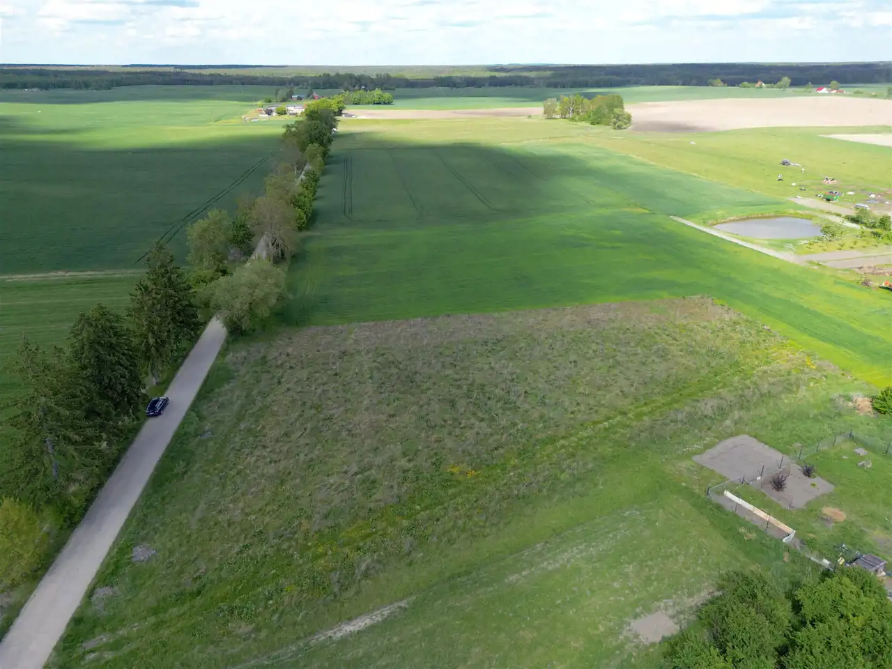 - Media Woda: na działce; Prąd: w ulicy