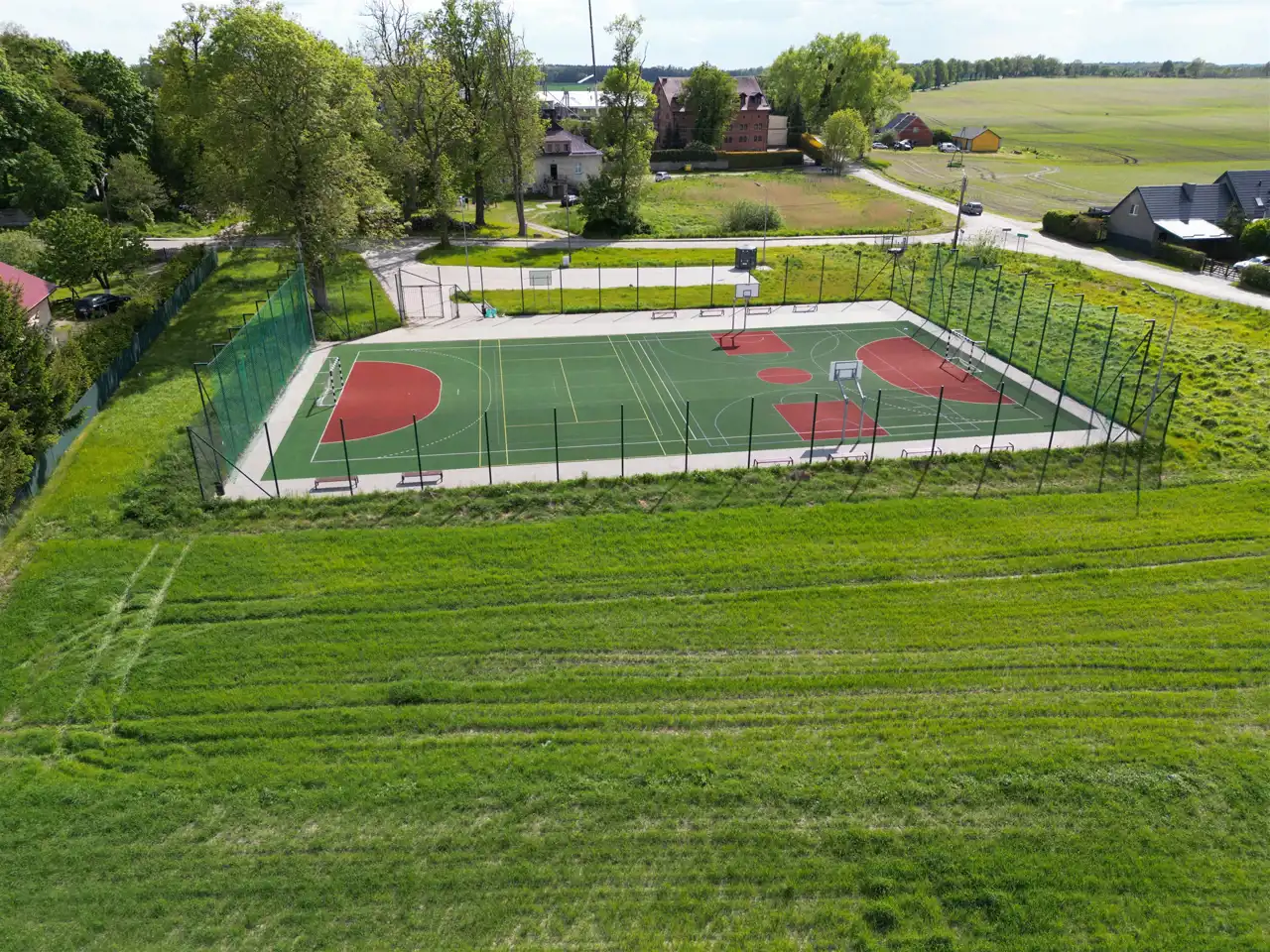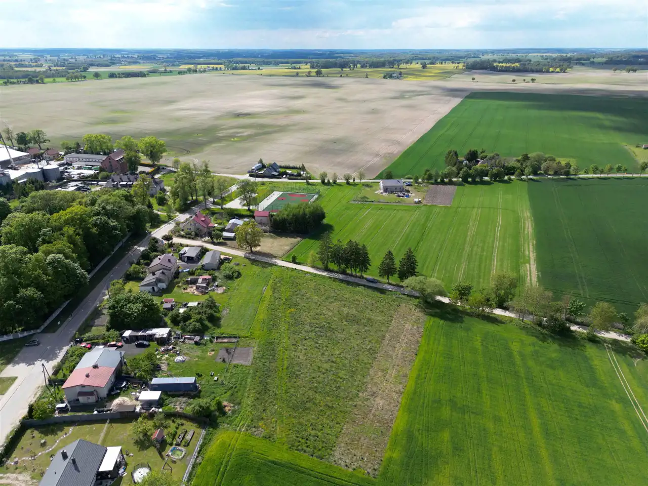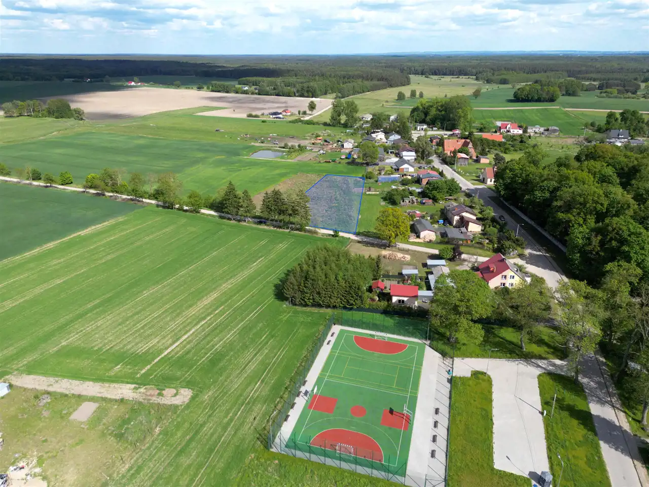 W okolicy znajdziesz malownicze jeziora i rozległe tereny zielone, które tworzą niepowtarzalny krajobraz, oferując jednocześnie idealne warunki do relaksu i odpoczynku na świeżym powietrzu. W bezpośrednim sąsiedztwie działki znajduje się również boisko wielofunkcyjne, doskonałe dla rodzin z dziećmi oraz osób ceniących sobie aktywność fizyczną.