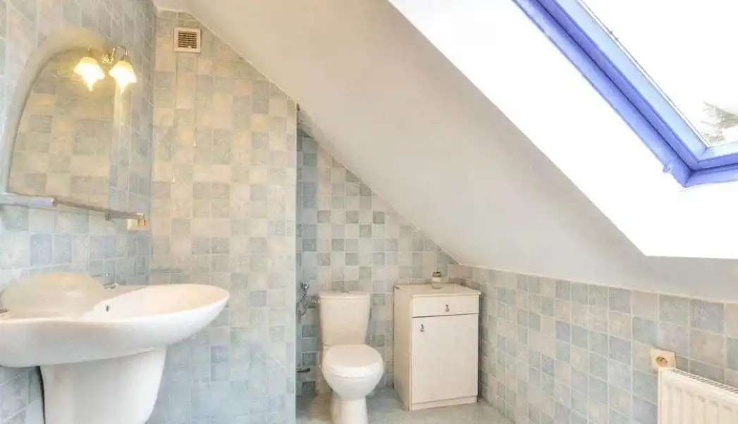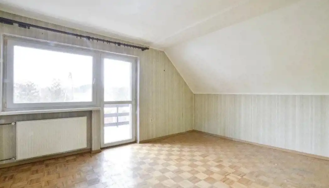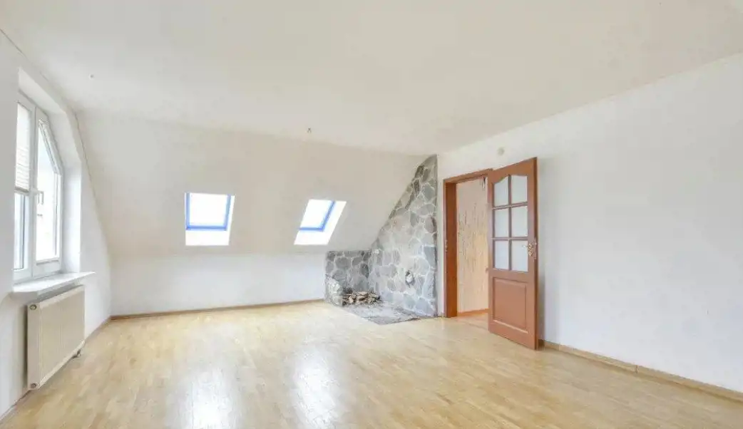 - Poddasze: hol z kuchnią, łazienka, 3 pokoje;