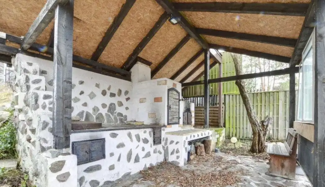 zadaszony grill z paleniskiem. Działka od strony południowej graniczy z naturalnymi stawami i zielenią, co daje jeszcze większe poczucie prywatności i kontakt z naturą.
