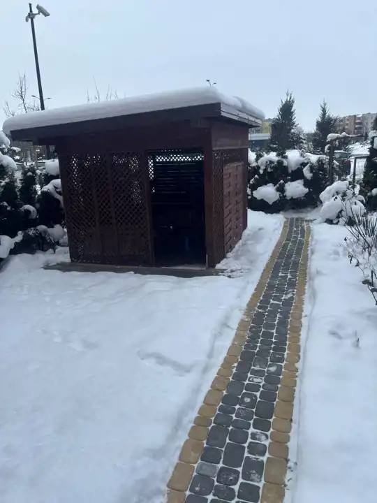 Duży parking, dlatego też nie ma problemu z zaparkowaniem samochodów.