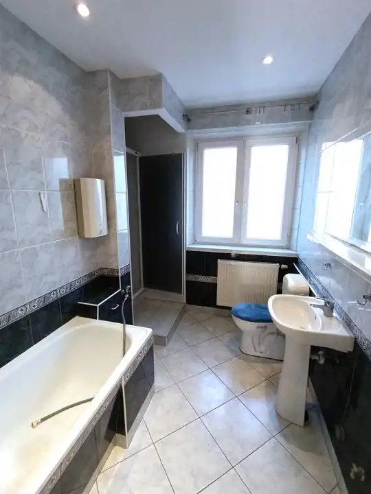 Na sprzedaż bardzo przestronne, 4-pokojowe mieszkanie w centrum Suwałk. Lokal o powierzchni 102 m2 położony jest na I piętrze w odrestaurowanej, kamienicy. Pokój dzienny w którym znajduje się kominek, połączony jest z kuchnią. Kuchnia jest wyposażona we wszystkie potrzebne sprzęty. W łazience znajdziemy zarówno wannę jak i kabinę prysznicową. W mieszkaniu drewniane podłogi. Dzięki bardzo dużym oknom lokal jest niebywale słoneczny. Mieszkanie dodatkowo posiada duże poddasze o powierzchni 50 m2, oraz piwnicę o powierzchni 37,60 m2. Nowy nabywca nie musi martwić się, że zabraknie mu miejsca do przechowywania rzeczy.