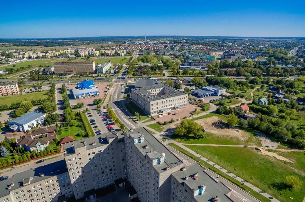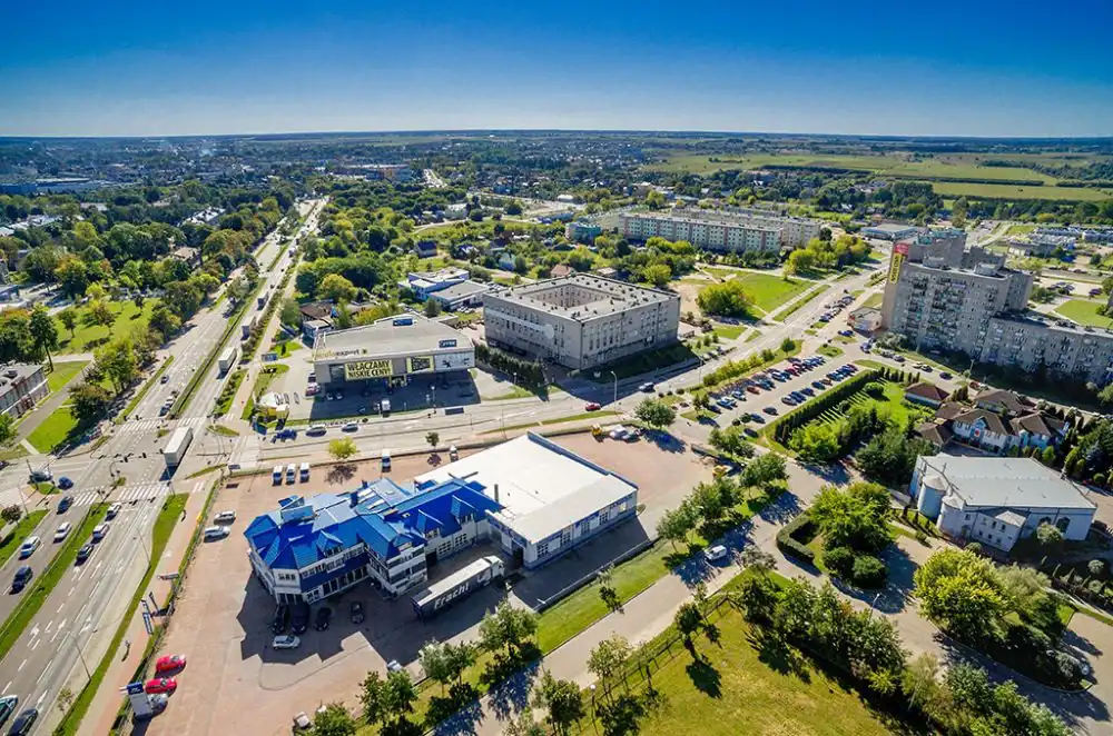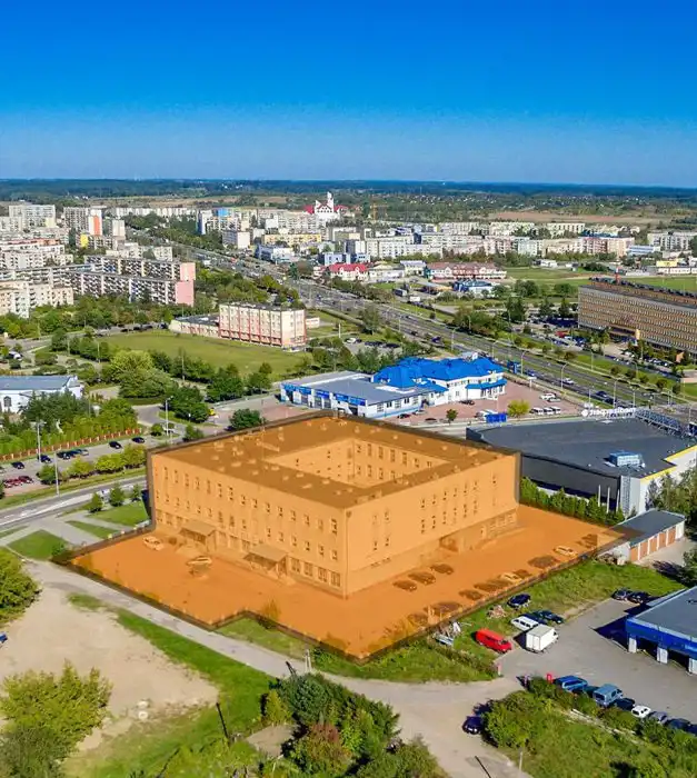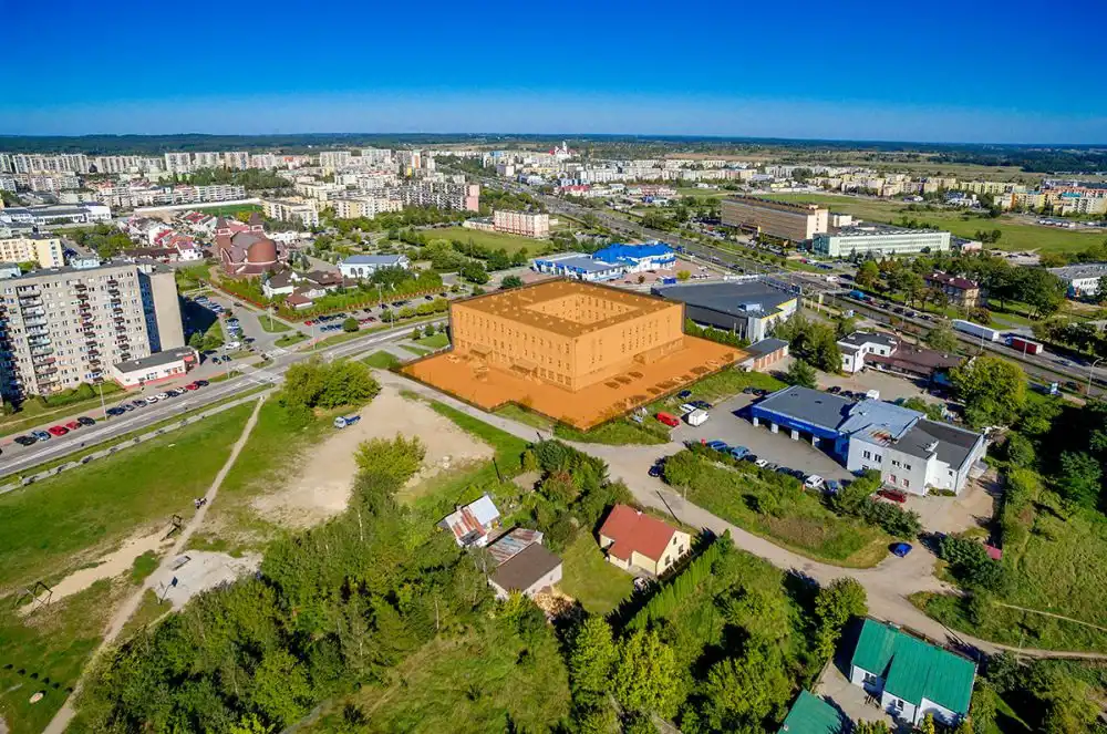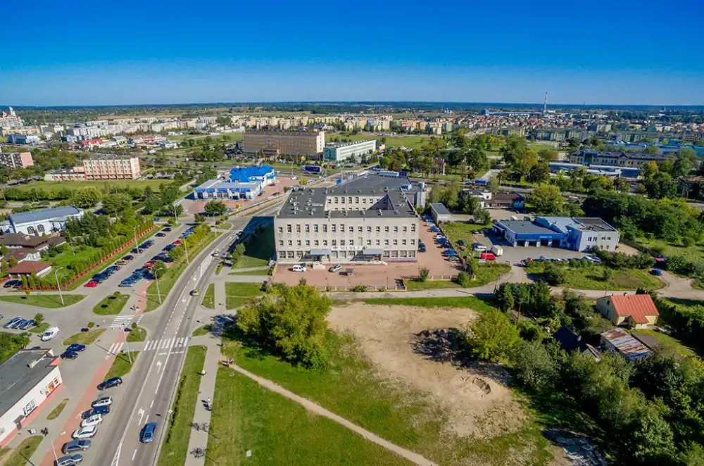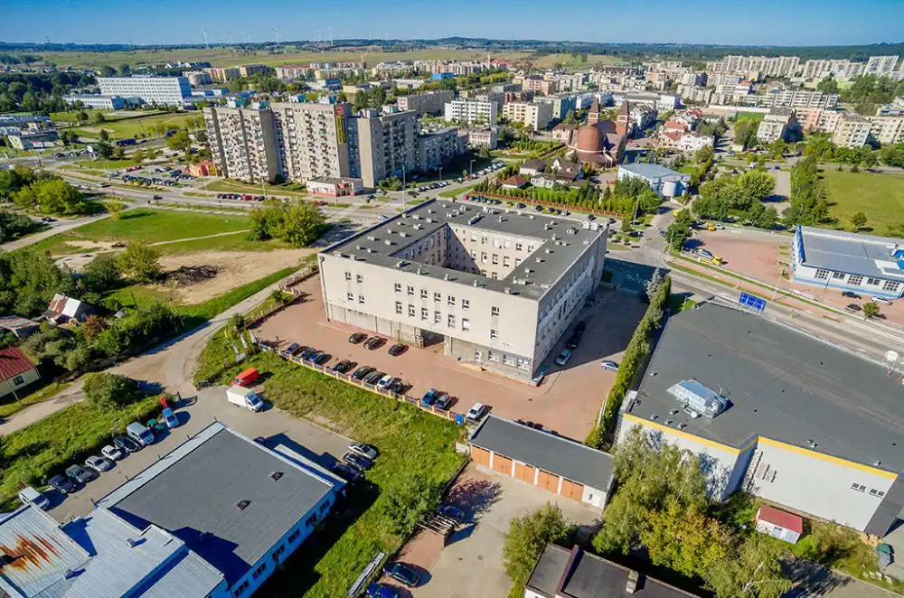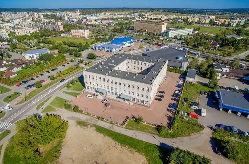 Budynek biurowo-usługowy o powierzchni netto 5 440,76 m2 wraz z prawem użytkowania wieczystego działek o łącznej powierzchni 6379 m2. 2-piętrowy, podpiwniczony obiekt został wybudowany w 1990 r. Nieruchomość posiada dziedziniec zagospodarowany na parking – ok. 15 miejsc postojowych. Atutem nieruchomości jest jej położenie w niedalekiej odległości od centrum miasta, korzystne przeznaczenie w MPZP oraz duży plac wokół budynku mogący pomieścić 70 samochodów. Wewnątrz znajdują się pomieszczenia biurowe, częściowo odnowione. Obecnie obiekt w dużej części jest wynajmowany. Dostępne instalacje: elektryczna, wodno-kanalizacyjna, c.o., teletechniczna, odgromowa.